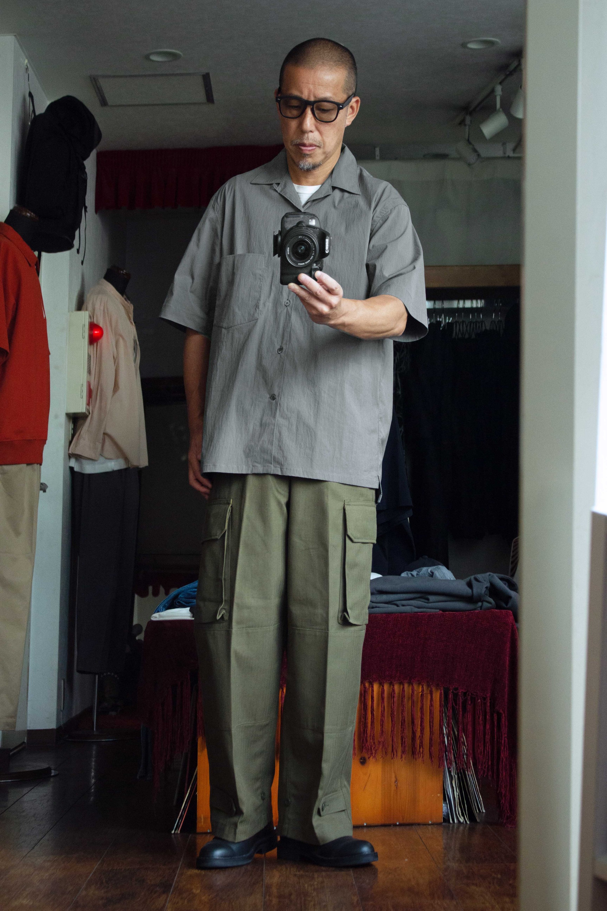 こちらはBrena Open Collar S/S Cotton Nylon Typewriter Stretchになります。生地にはコットンナイロンタイプライター生地を使用。染色前に特殊な前処理加工で柔らかな風合いをだし、そのあと液流染料により揉みこんで更に柔らかさをプラス。そして最後に天日干し風のワッシャー加工を施した、軽量で柔らかくストレッチ性がありながらも、どこかナチュラルな雰囲気もある生地になります。デザインはオープンカラーの襟にボックスシルエット、胸ポケットは上からと横からの二層構造のポケットを装備。またボタンは千鳥掛けの仕様に、縫製は国内トップレベルのドレスシャツ工房にて縫製。大人っぽくも適度にカジュアル感のある丁度良い雰囲気のBrenaならではのシャツに仕上がっております。是非お試しください。
