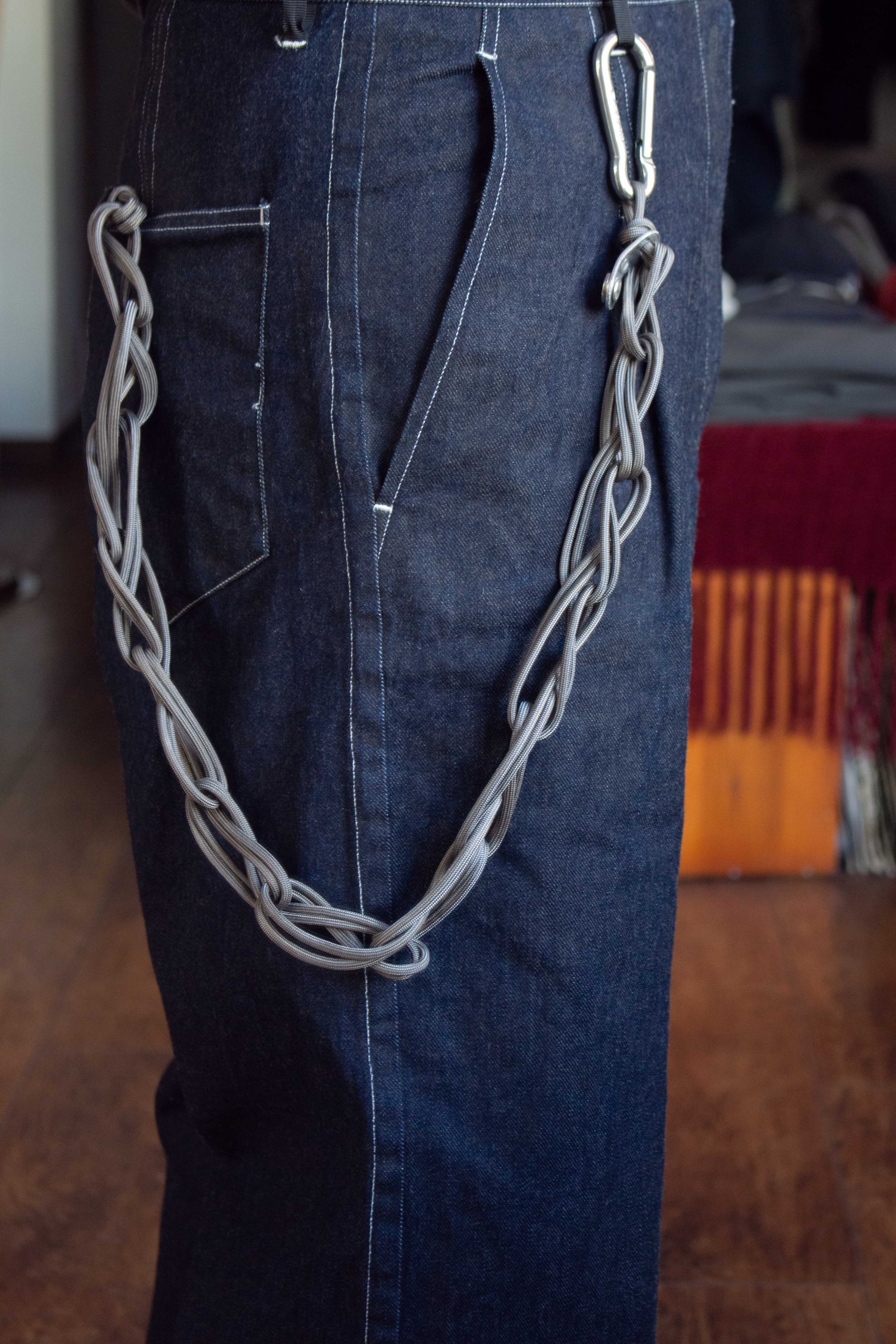 こちらはNulabel 暮染めナイロンロープカラビナになります。カラビナ部分はレスキュー部隊等でも採用されているイタリアのKong社のカラビナを採用し、自在金具部分にブランドロゴリベットを配しアクセントに。またロープ部分は4mmのパラコードに、日本古来から伝わる伝統的な染め方である暮染めを、国内有数の染色加工工房である株式会社おおまえに依頼し染色したものを使用。暮染めは渋柿の搾汁を発酵・成熟させたもので染める、いわゆる渋柿染めにしたものを、鉄分を多く含んだ水につける事により『夕暮れ』のような深みのある黒色に染色にする工法で、この工法で染色された生地は撥水、抗菌、消臭、防腐性を持ち、更に生地の耐久性を向上させる特性を持っています。現代の日常において必要な高機能を最新のテクノロジーではなく、日本において1000年以上の歴史を持つ伝統的な技法により備えさせた、今までにない試みによるナイロンコードとなっております。暮染めによる経年変化も楽しめますので是非お試しください。