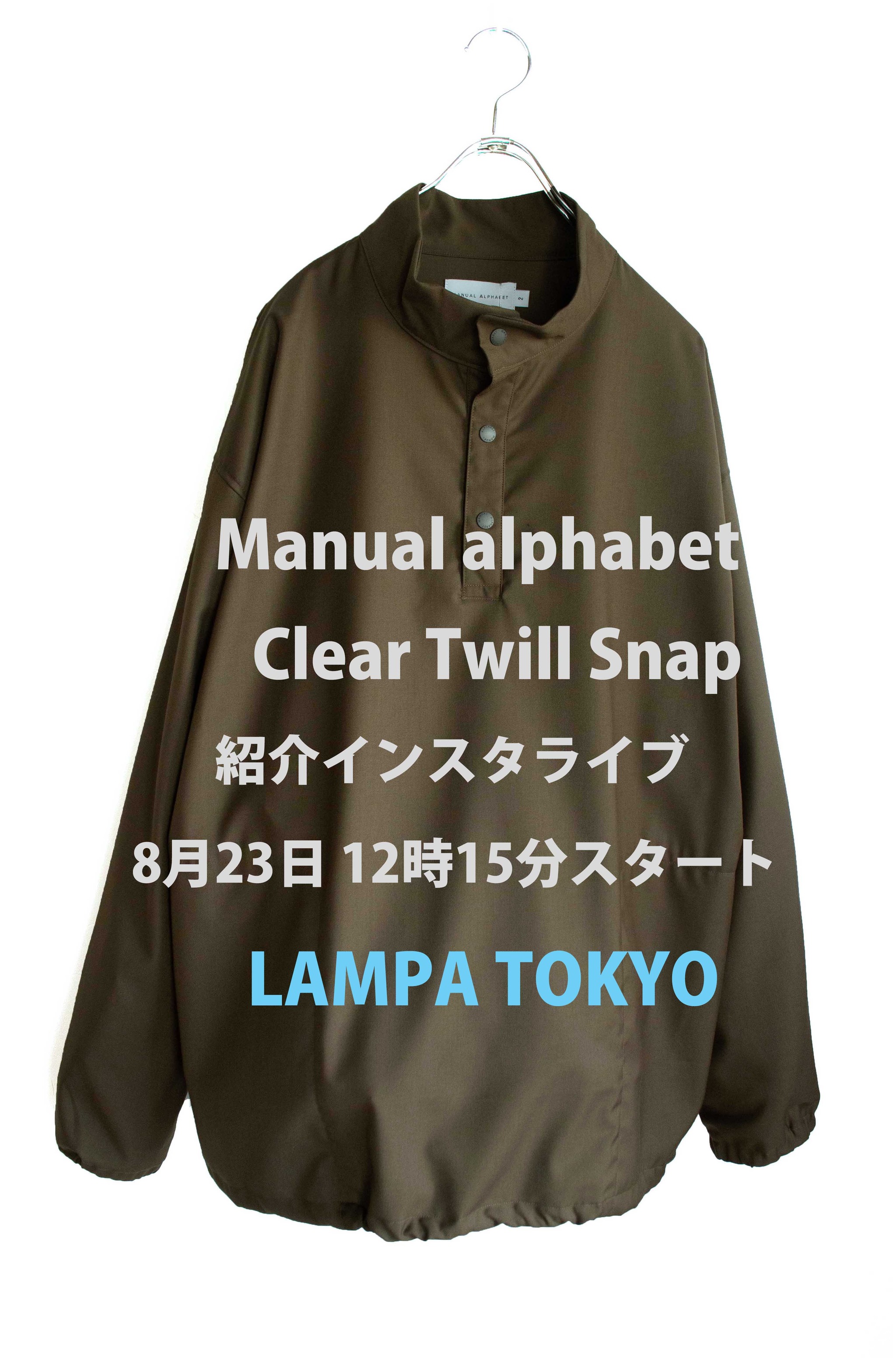 Manual alphabet Clear Twill Snap Tee MA-J-384をインスタライブでご紹介!デイリーながらも洒落た雰囲気のアノラックです!是非ご覧になってみてください!明日23日のお昼12時15分からスタート予定です!※インスタアカウントは下記URLになります。