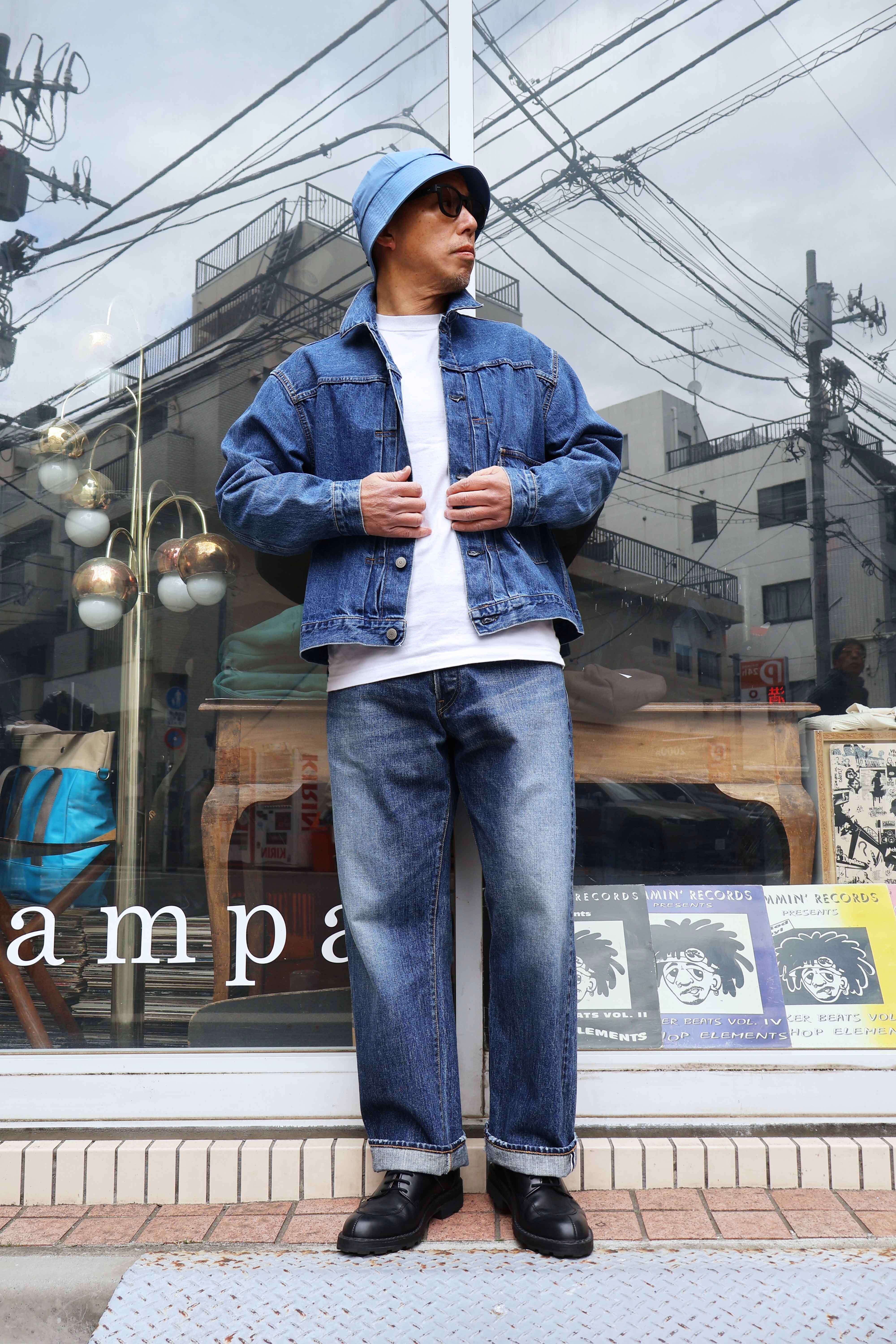 デザインはいわゆるリーバイスのファーストをモチーフに、フロントはダブルアクションプリーツに左胸にフラップポケットを配し、また背面にはプリーツに、シンチバックを配しオリジナルの雰囲気を漂わせながらも、着丈は若干長めに設定、シンチバックも針付きでは無いものを採用し、本来のGジャンには無い着やすさと合わせやすさを実現。デニムの産地として世界的に高い評価を得ている岡山の児島を拠点とするブランドならではの生産力に、どこか東京を感じさせる見栄を張らず、やり過ぎない洗練されたに仕上がっております。是非お試し下さい。