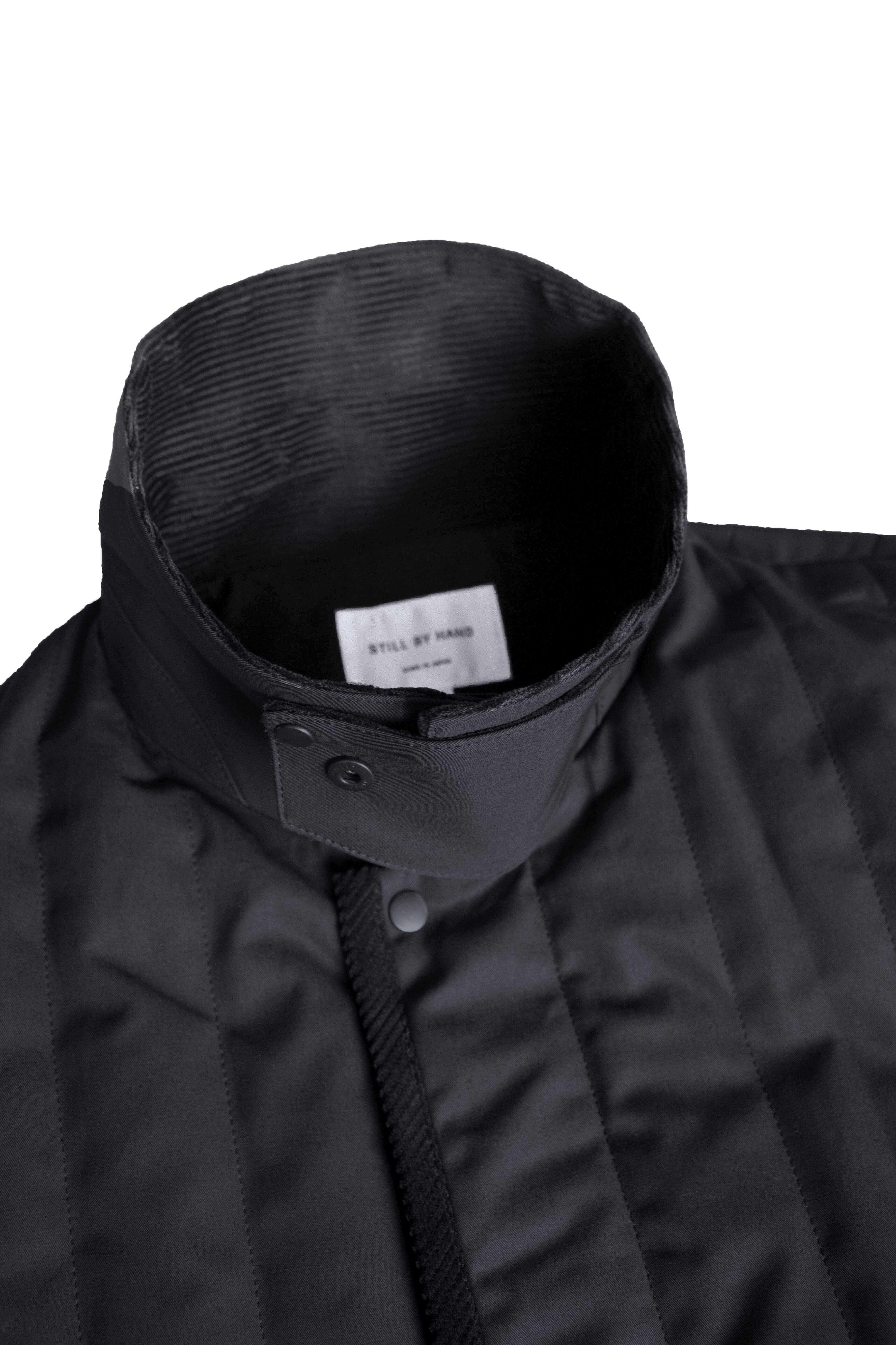 こちらはSTILL BY HAND キルティングハーフコート CO02253になります。表地にはコットン100%ながらも撥水性のあるものに、薄くても保温性のある高機能中綿であるシンサレートをキルティングしたものを使用。コットン特有のナチュラルな見え方ながらも撥水性、保温性があり、縦方向にだけキルトした見え方が面白い生地になります。デザインは英国のクラシックなハーフコートをベースに、首はチンストラップを配し保温性を高め、袖の内側にはコーデュロイを配し折り返して着用した際のアクセントに。デザインソースのカチっとしたイメージを、生地やキルトデザイン、シルエットバランスにより柔らかなリラックスした雰囲気にアレンジした、STILL BY HANDらしい洗練されたハーフコートに仕上がっております。是非お試しください。