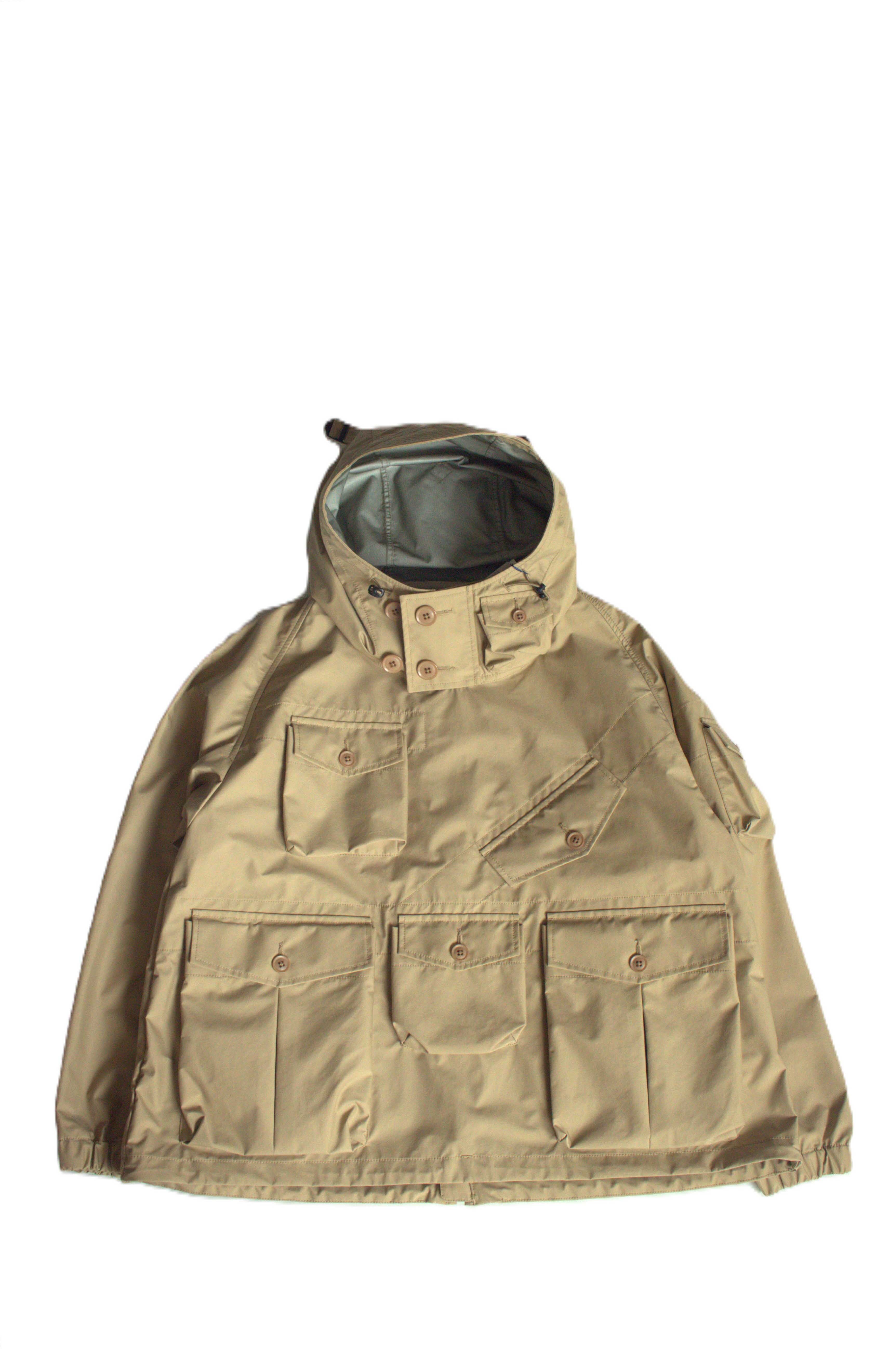 こちらはMODMNT MIL SMOCK SHORTになります。生地には高い撥水性、透湿性を持った3レイヤー高機能生地を使用。デザインは英軍ロイヤルネイビーヴェンタイルスモックをベースに着丈を少し短くし、ポケットデザインをアレンジ。またフード後ろには、同じく英軍ロイヤルネイビーのFOUL WEATHER JACKETのようなクロス状のアジャスターを配す事によりフード着用時のフィット感を高めると共にデザインアクセントにし、背面にはジップを配し着脱のしやすさを向上。ミリタリー要素がありながらも都会的な洗練された雰囲気に仕上げたMODMNTが提案する高機能スモックになります。是非お試しください。