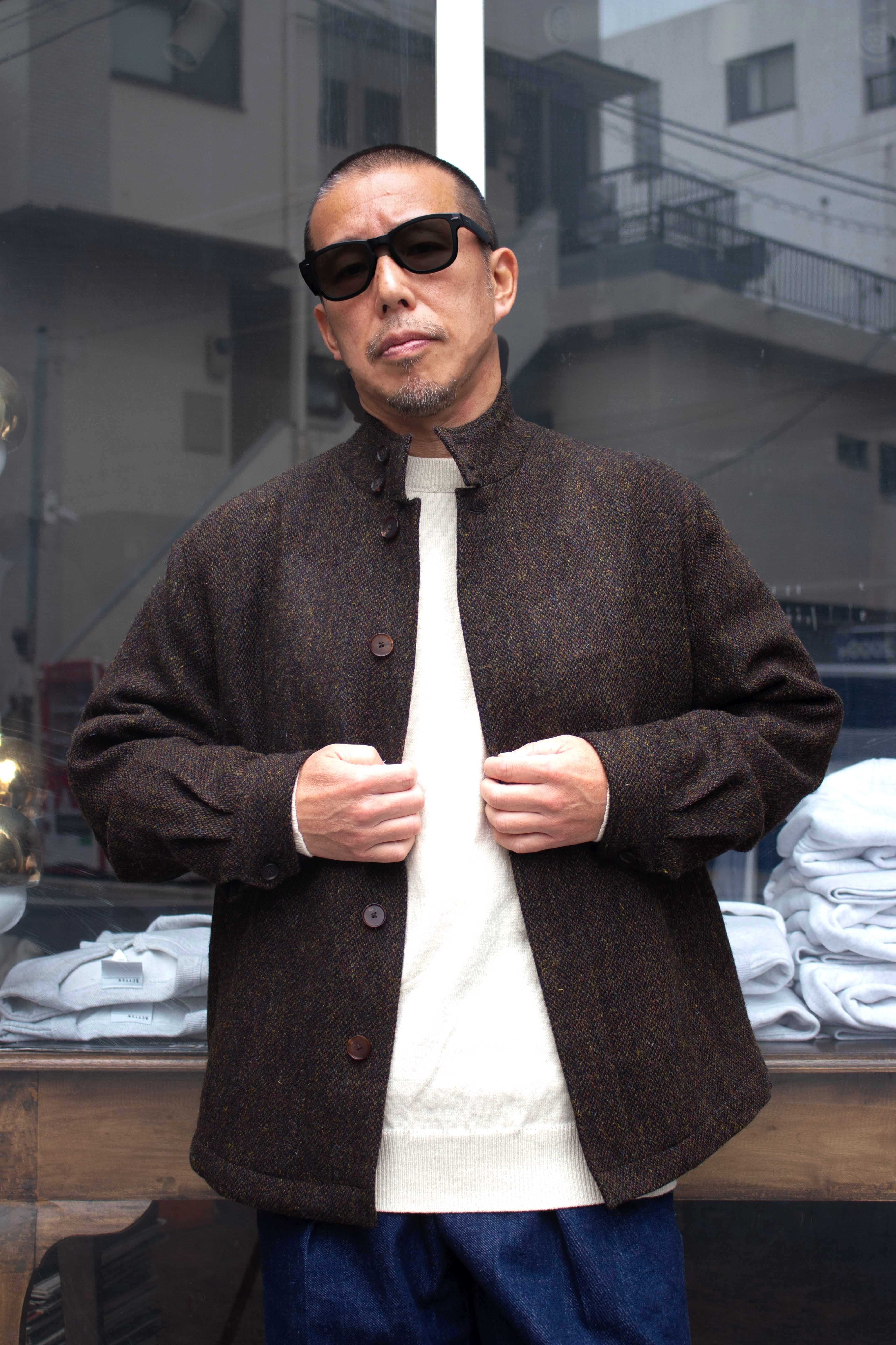 デザインはバラクータのG4をベースに襟はドッグイヤー、前身頃は比翼仕立てにボタンは水牛ボタンを使用。肩はやや落ち気味のスプリットラグランを採用する事により、クラシックな見え方ながらも動きやすく、袖はG4同様にシャツカフス仕様にし、裾もG4同様にリブ無しの仕様ですが直線では無く緩くラウンドした丸みのあるシルエットに。また裏地には表地の雰囲気を壊さない様にイギリス製のデッドストック生地をチョイスし、更にテーラード工房にて50年以上のキャリアを持つ熟練の職人が裁断から縫製まで一人で行う丸縫いにて製作。一般的な大量生産の工場では真似できないテーラード工房ならではの、立体的で包み込まれるような極上の着心地のジャケットに仕上がっております。