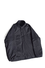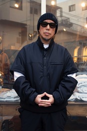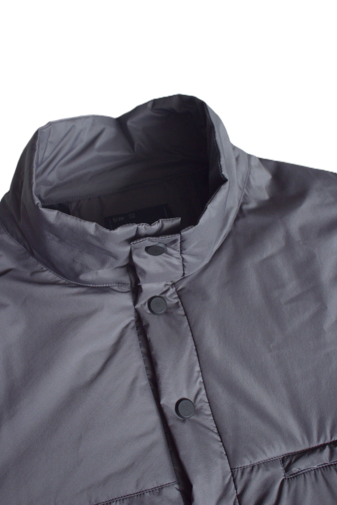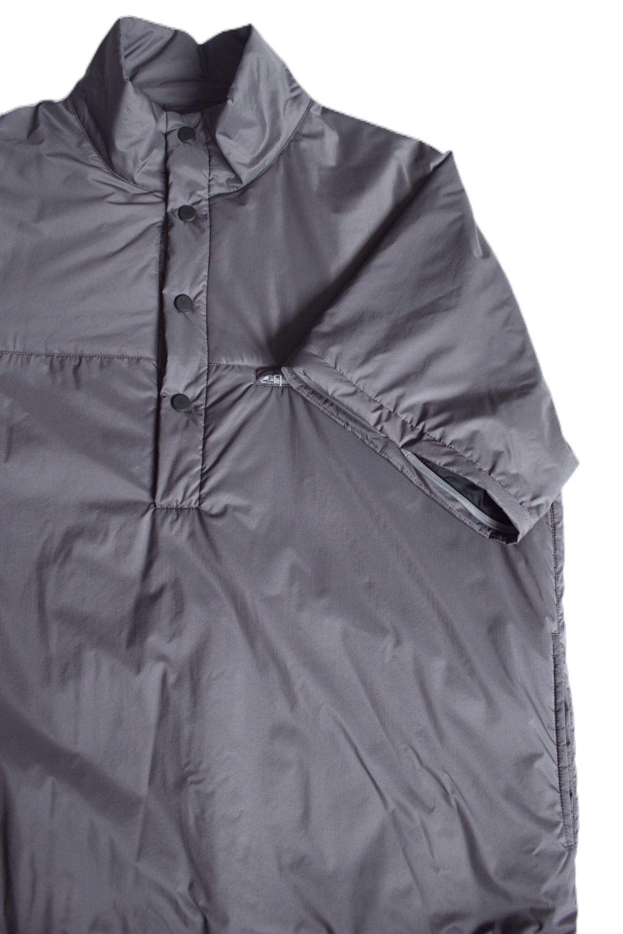 こちらはMEANSWHILE ULTRALITE PADDING SH MW-SH24204になります。生地にはプレコンシューマリサイクルナイロンを使用した超軽量マイクロリップストップナイロンを使用。軽量で防風性があり、中綿を入れる事により防寒性を高めたものになります。デザインはアウトドアジャケットに見られるハーフスナップの仕様に、左胸にジップポケットを装備、裾にはアジャスターを配しシルエットの調整が可能。またハンマースリーブのような独特なスリーブデザインを採用しナチュラルな肩のラインを演出。更に袖はジップにより半袖にもなり様々な気温、スタイルに対応可能と、機能的でありながらも、ファッションとしても成立するMEANSWHILEらしいジャケットに仕上がっております。是非お試しください。
