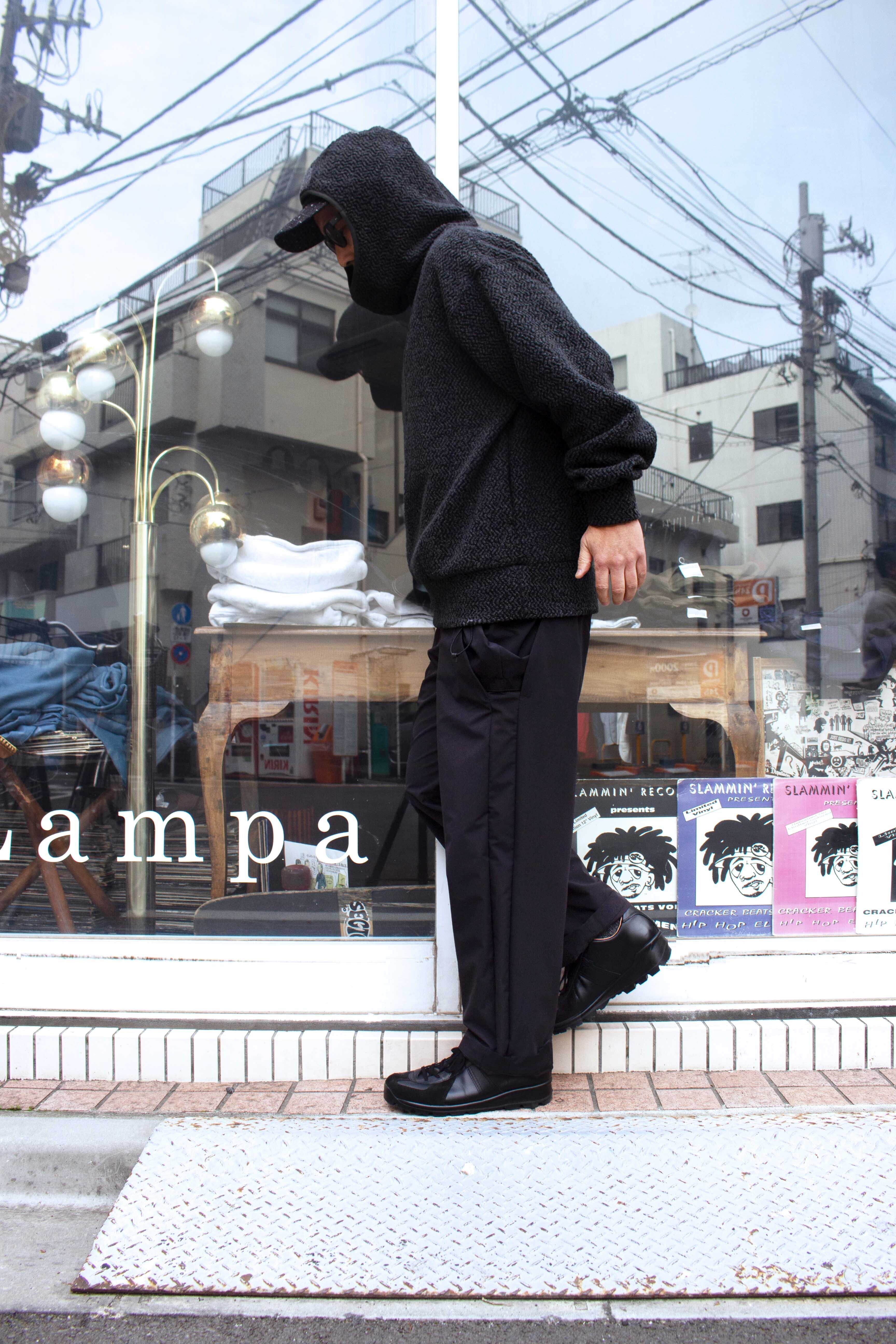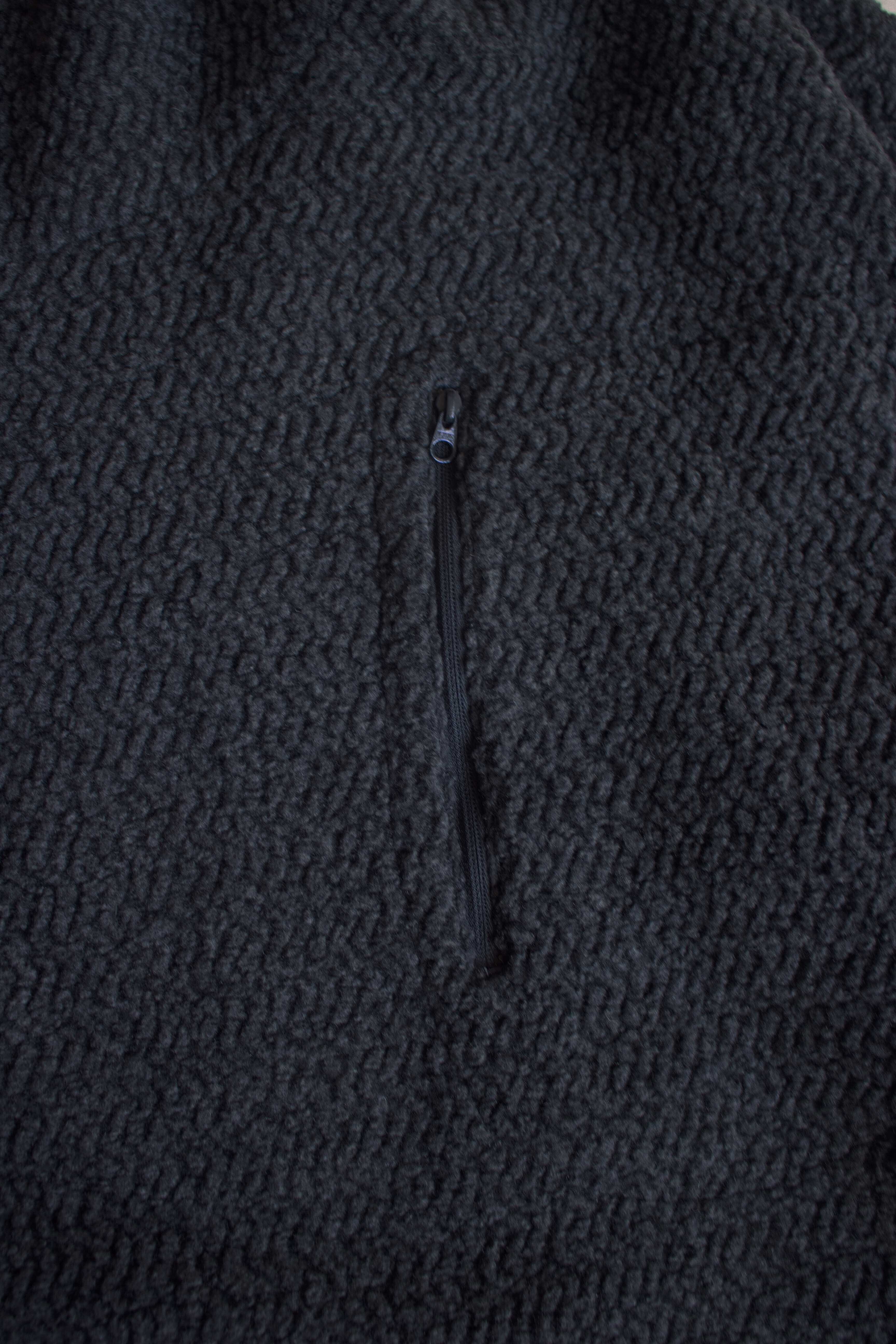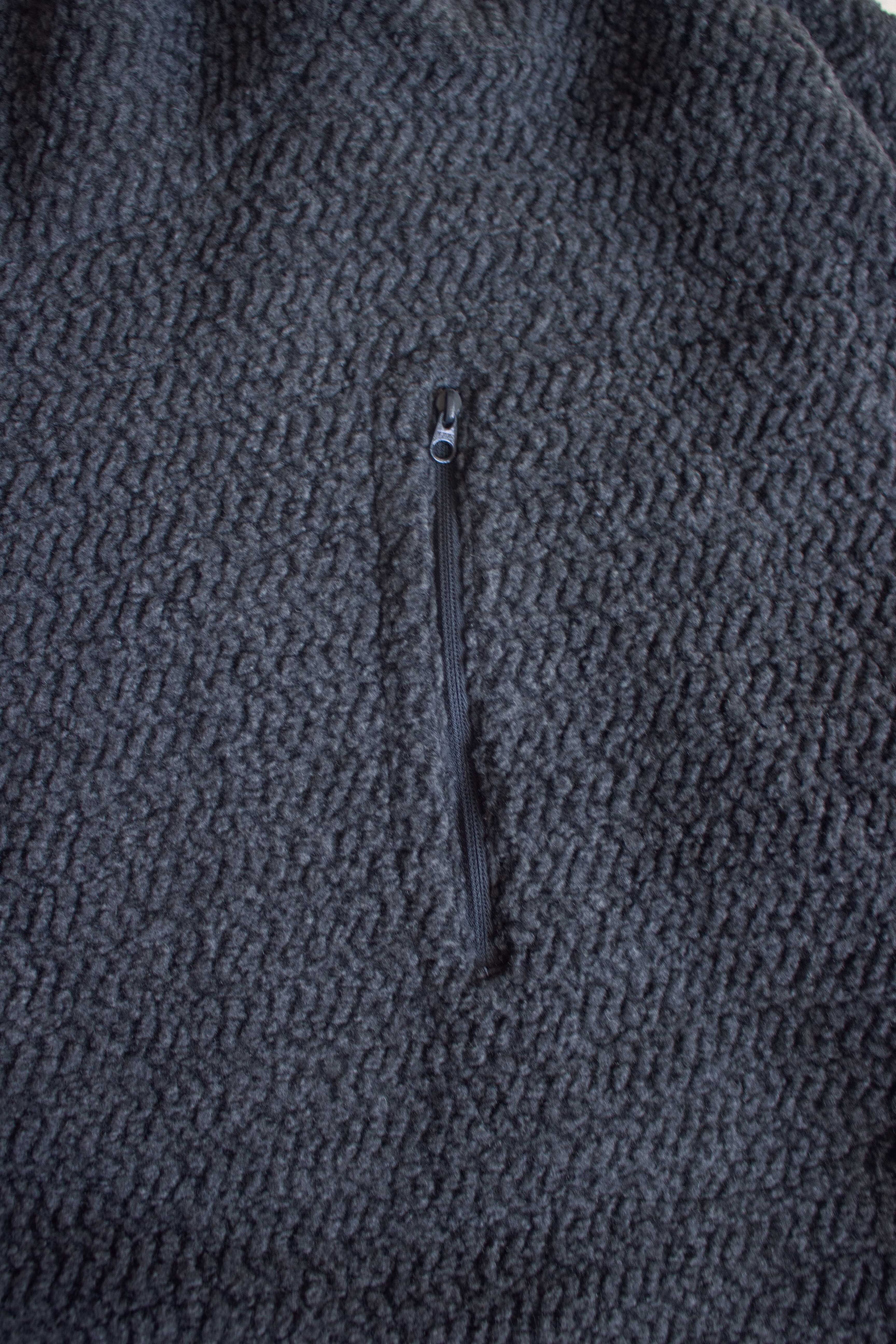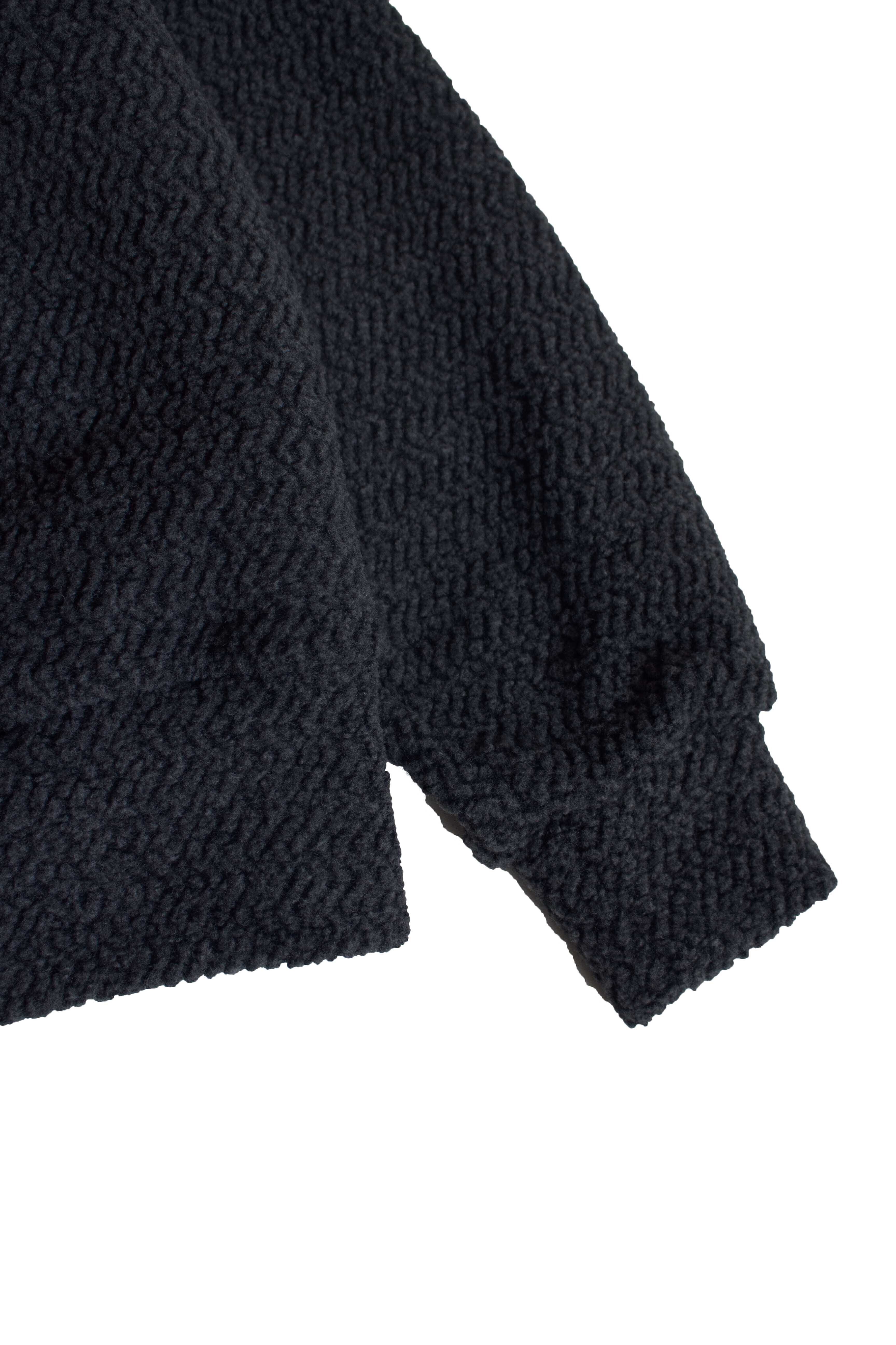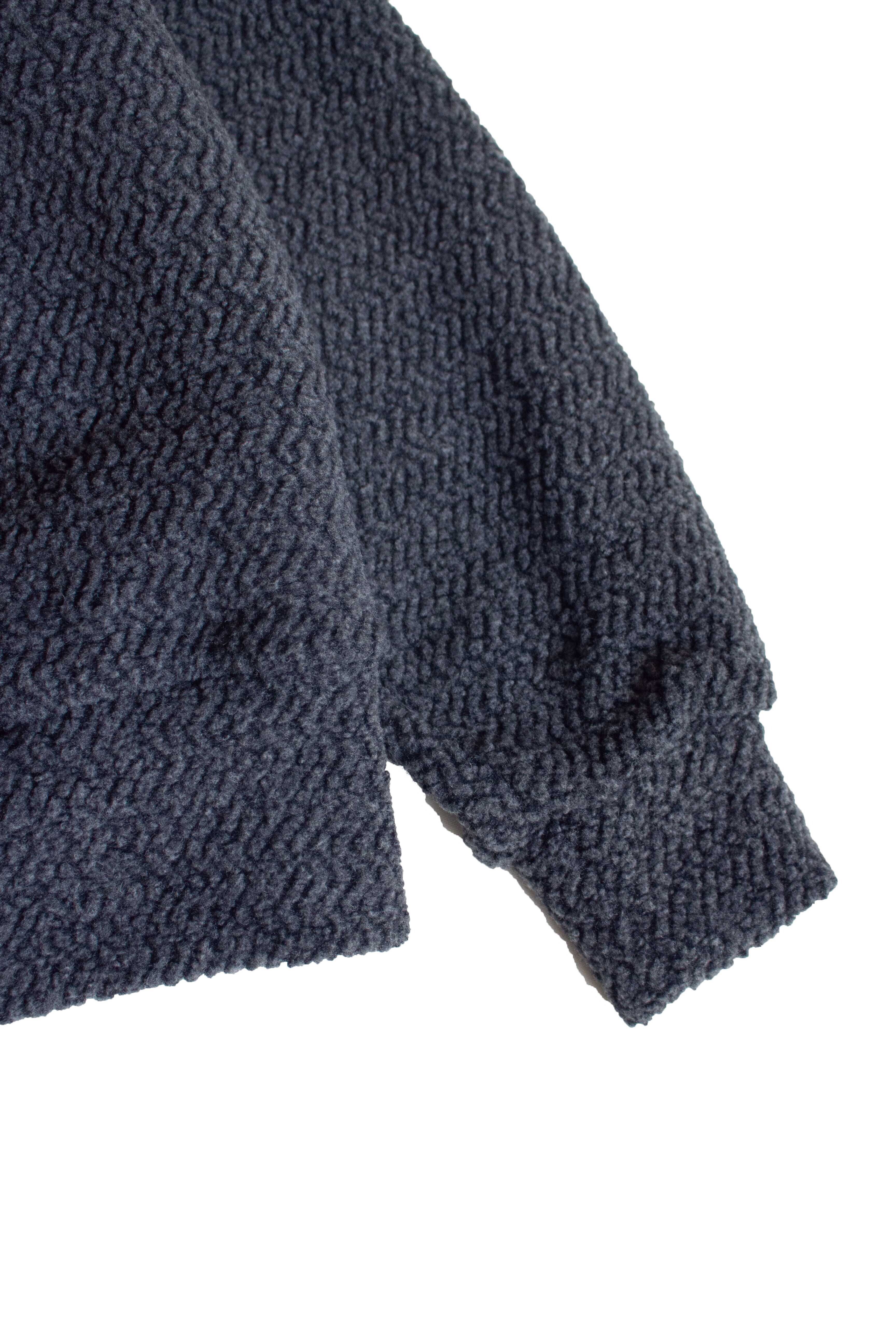 こちらはMODMNT HOODED TURTLE POPOVERになります。生地には150年近くウールリサイクルを続けてきたイタリア・CALAMAI社のリサイクルウールフリースを使用。再生ウールとマイクロ化繊糸をブレンドし、ボリューム感がありながらも軽く快適な着心地に加え、防臭性・保温性にも優れた生地になります。デザインは一般的なフードデザインでは無く、バラクラバ型のフードデザインを採用し独特な首周りの見え方を演出。また胸にはジップポケットを配し機能面を向上。アウトドアでよく見られるミドルレイヤーフリースをMODMNT流にアレンジした絶妙なバランス感のアイテムに仕上がっております。是非お試しください。