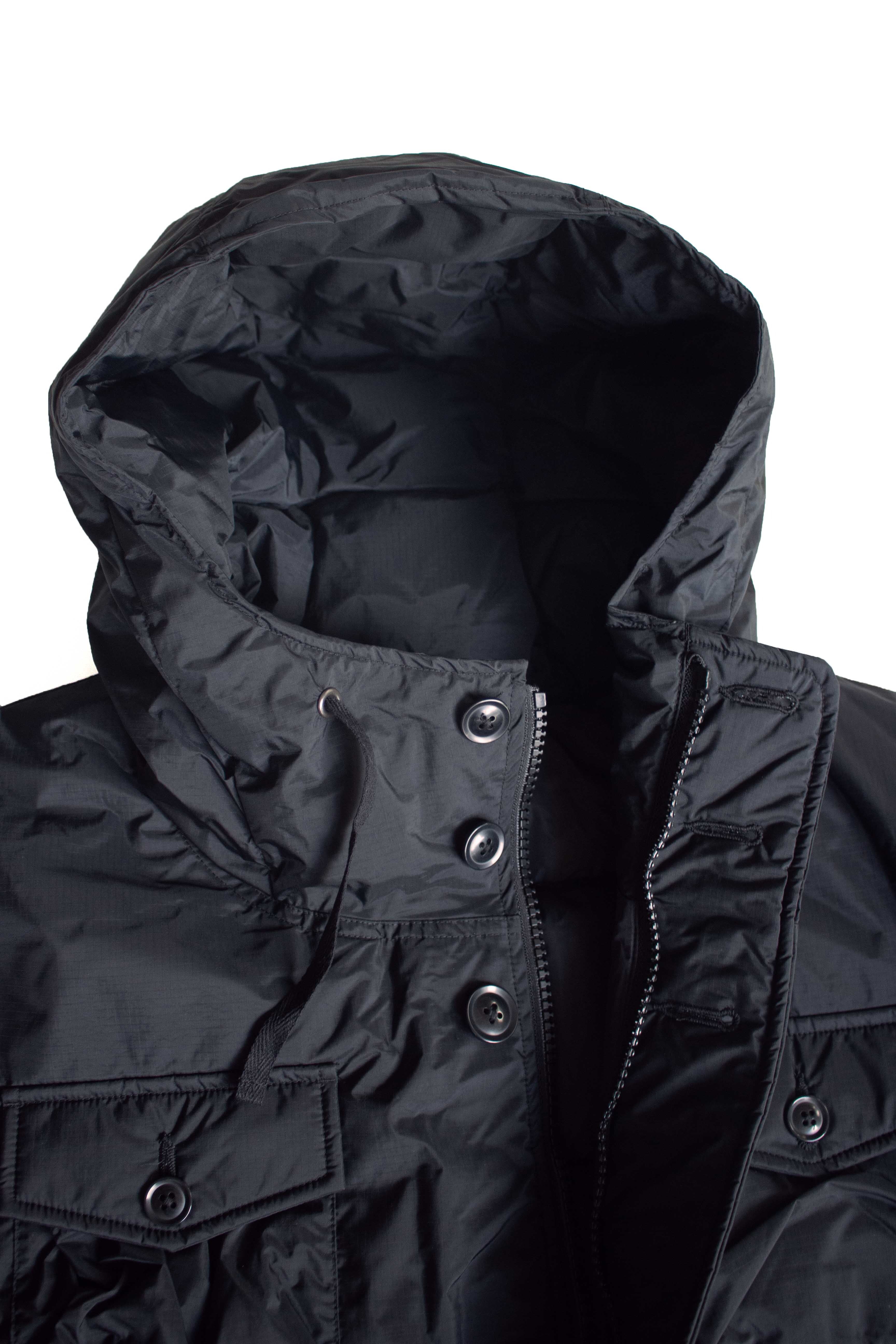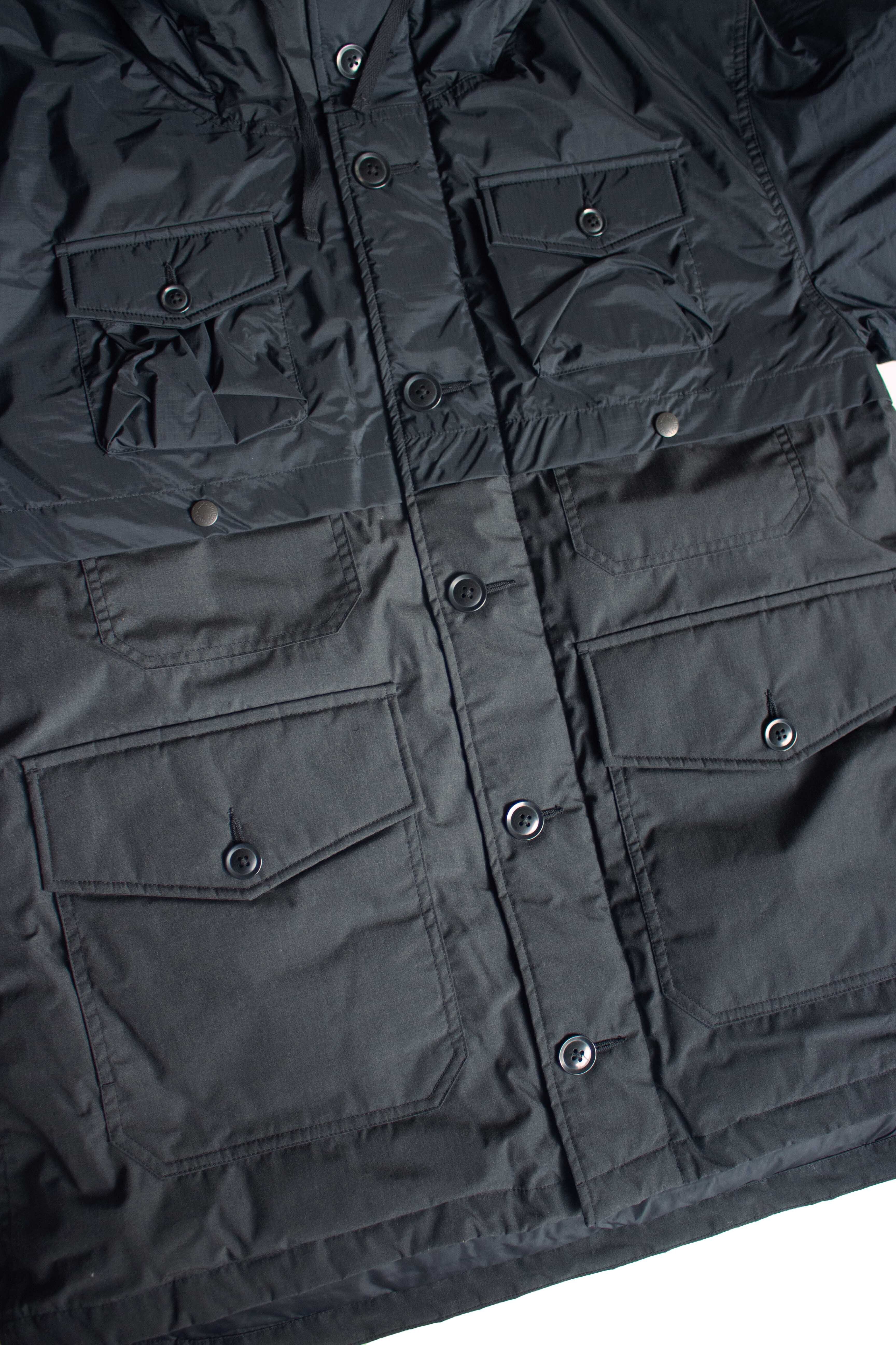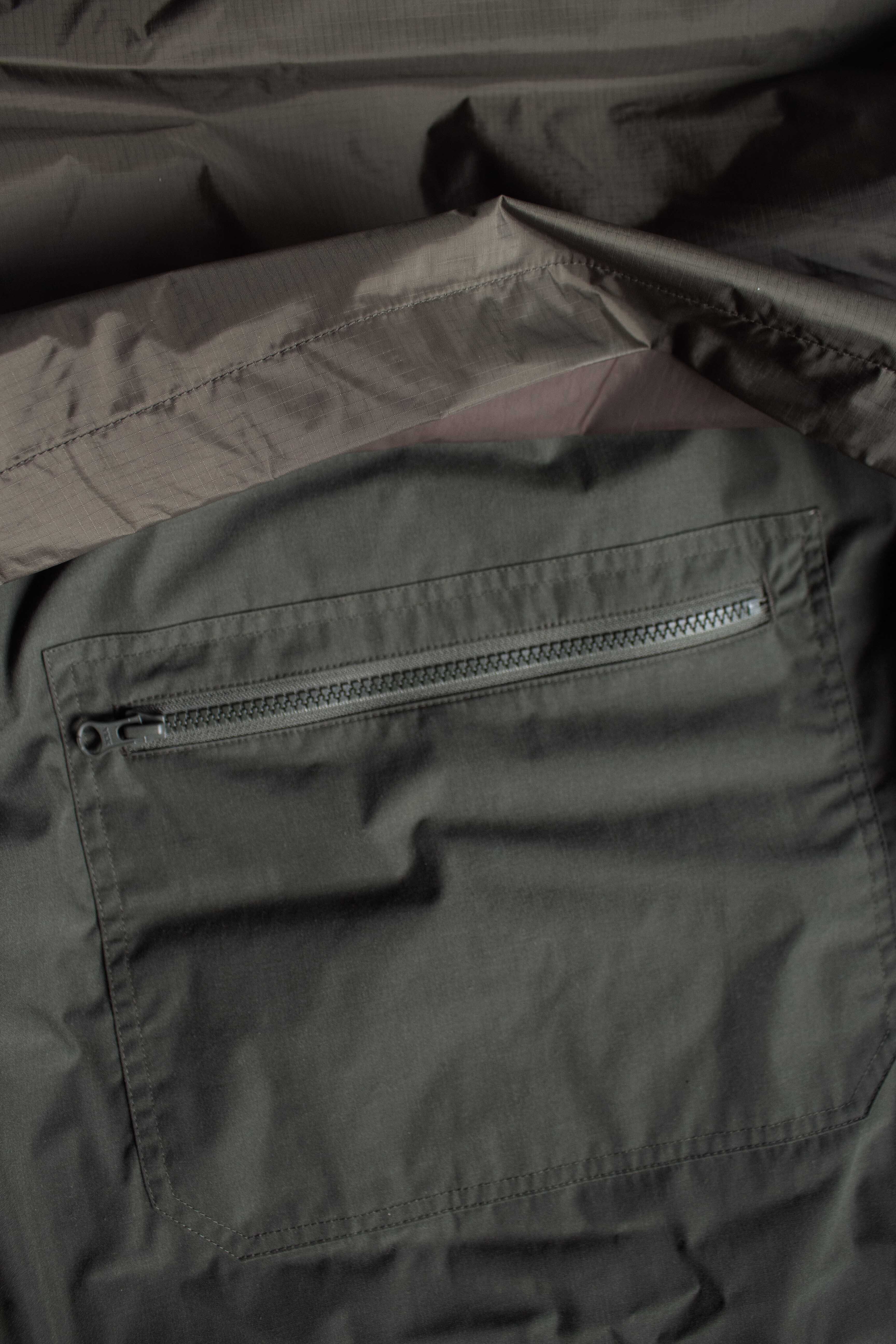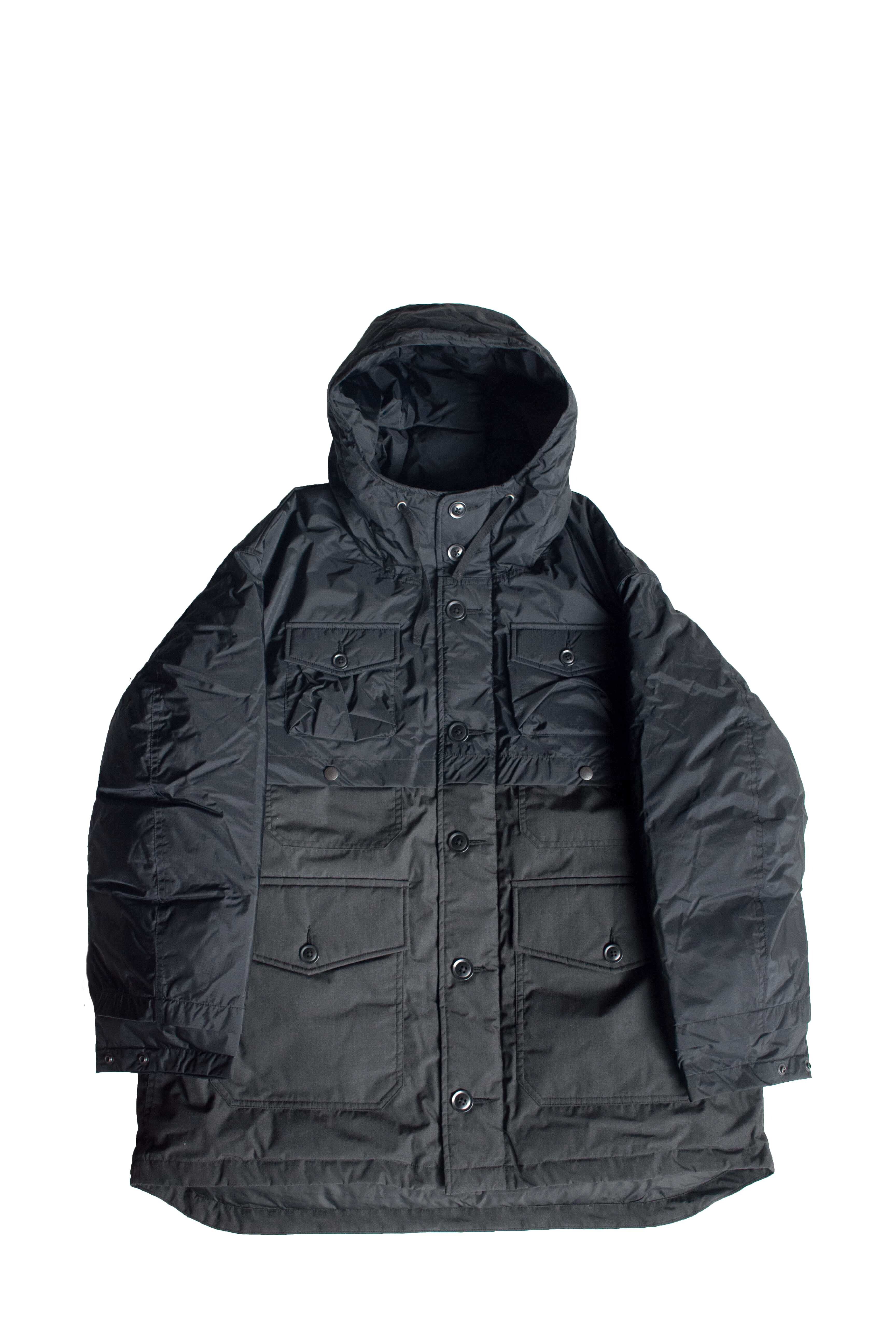 こちらはMODMNT SUPER MACKINAWになります。生地にはナンガ独自の高機能素材であるオーロラテックスを身頃上に、同じくナンガ独自の高機能素材であるヒノックを身頃下に使用。オーロラテックスは高い防水性、透湿性を持った高機能生地で、ヒノックは燃えづらく摩耗や引き裂きにも強い特徴を持ちながらも、ナチュラルな見え方が特徴の高機能生地になります。また使用されているダウンはスペイン産ホワイトダッグダウンを使用し高い保温性を実現。デザインはフィルソンの名作であるダブルマッキーノジャケットをベースにヒノックの上にオーロラテックスが重り、それぞれの素材と色のコントラストが面白いデザイン仕様に、各所に様々な形状のポケットを配し機能面の向上と共にアクセントに。更に背中にはジップポケットに裾部分にはフラップポケットを配した凝った仕様を採用。日本のアウトドアを代表するナンガのテクノロジーと、日本を代表するファッションデザイナーの鈴木大器氏のデザインが融合した、今までにないバランス感のクルーザーダウンジャケットに仕上がっております。是非お試しください。