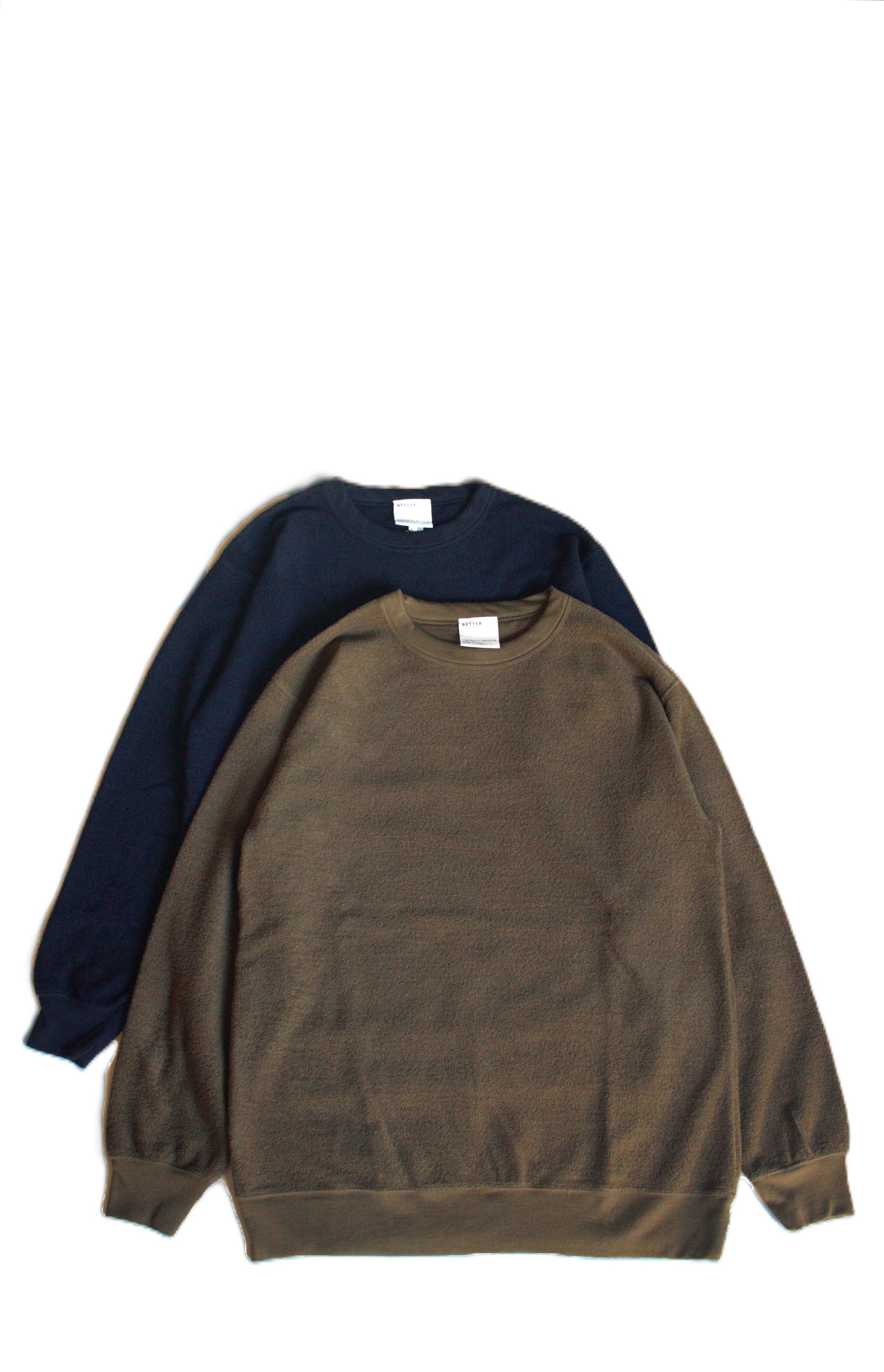 こちらはBETTER MERINO FLEECE CREW NECK PULLOVER BTR2533になります。生地にはカシミアと同クラスの超極細メリノウール SUPER140sで編み立てた高品質な裏毛素材を使用。メリノウールは天然のエアコンとも言われる衣類内の温度や湿度を快適なものにコントロールする天然の調節機能に加え、1週間着用しても匂いがしないと言われるほど高い天然の消臭機能を持ち、更にメリノウールの中でも最高品質のSUPER140sの超極細ならではの滑らかで柔らかな肌触りが最高な裏毛生地になります。デザインはメリノウールでは珍しいスウエットのような雰囲気にし、裾やリブにも身頃と同じ糸を用いたリブを採用。一般的にここまで高品質な糸だと、ニット編みのシンプルなセーターが多いですが、あえてスウエットの裏毛生地にし、更にパイルの裏地を表にする事により、全体的にシンプルな見た目のアクセントに。ウールながらも裏毛スウエットならではのカジュアル感が面白いBETTERならではのバランス感の仕上がりとなっております。是非お試しください。