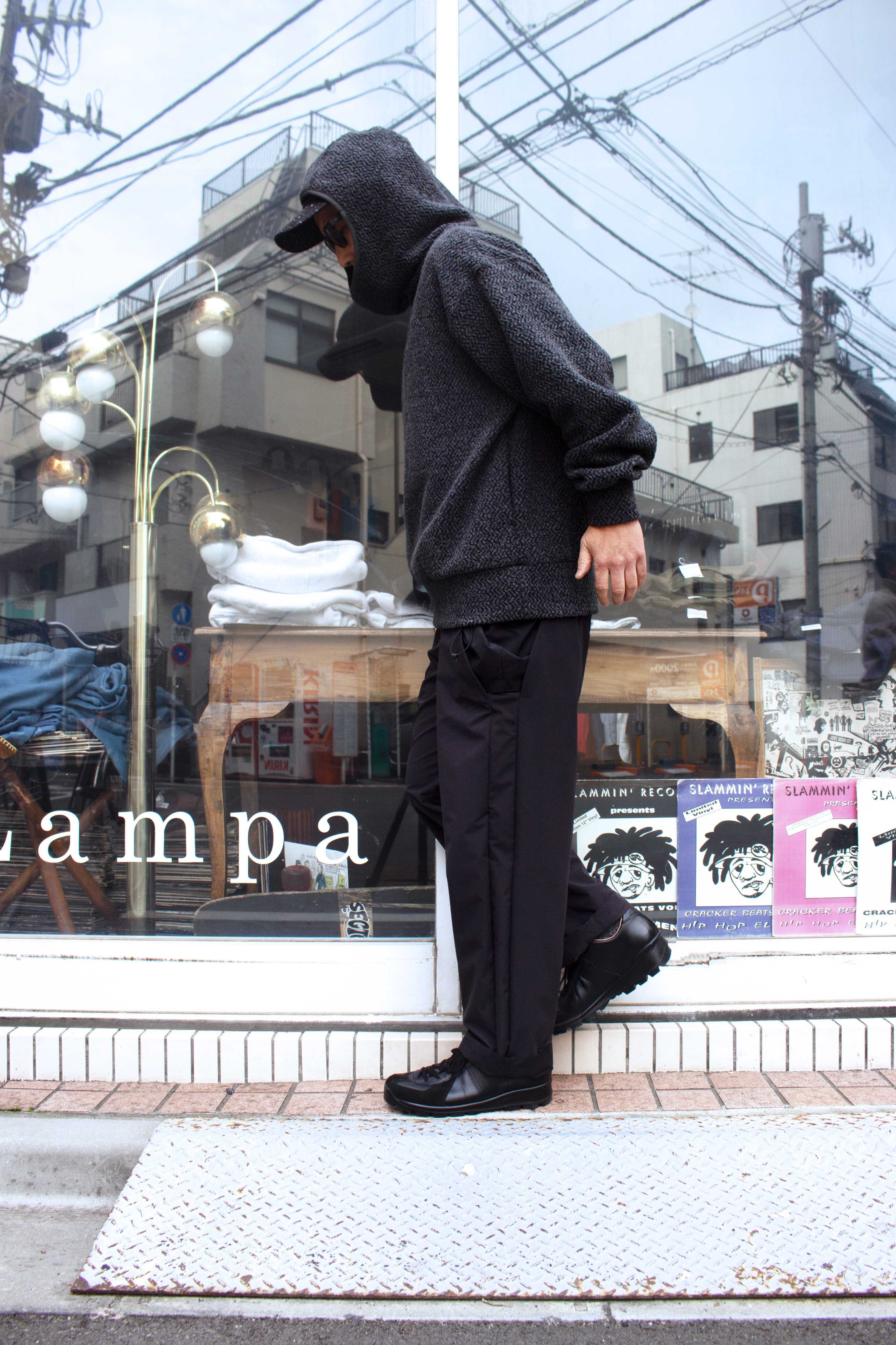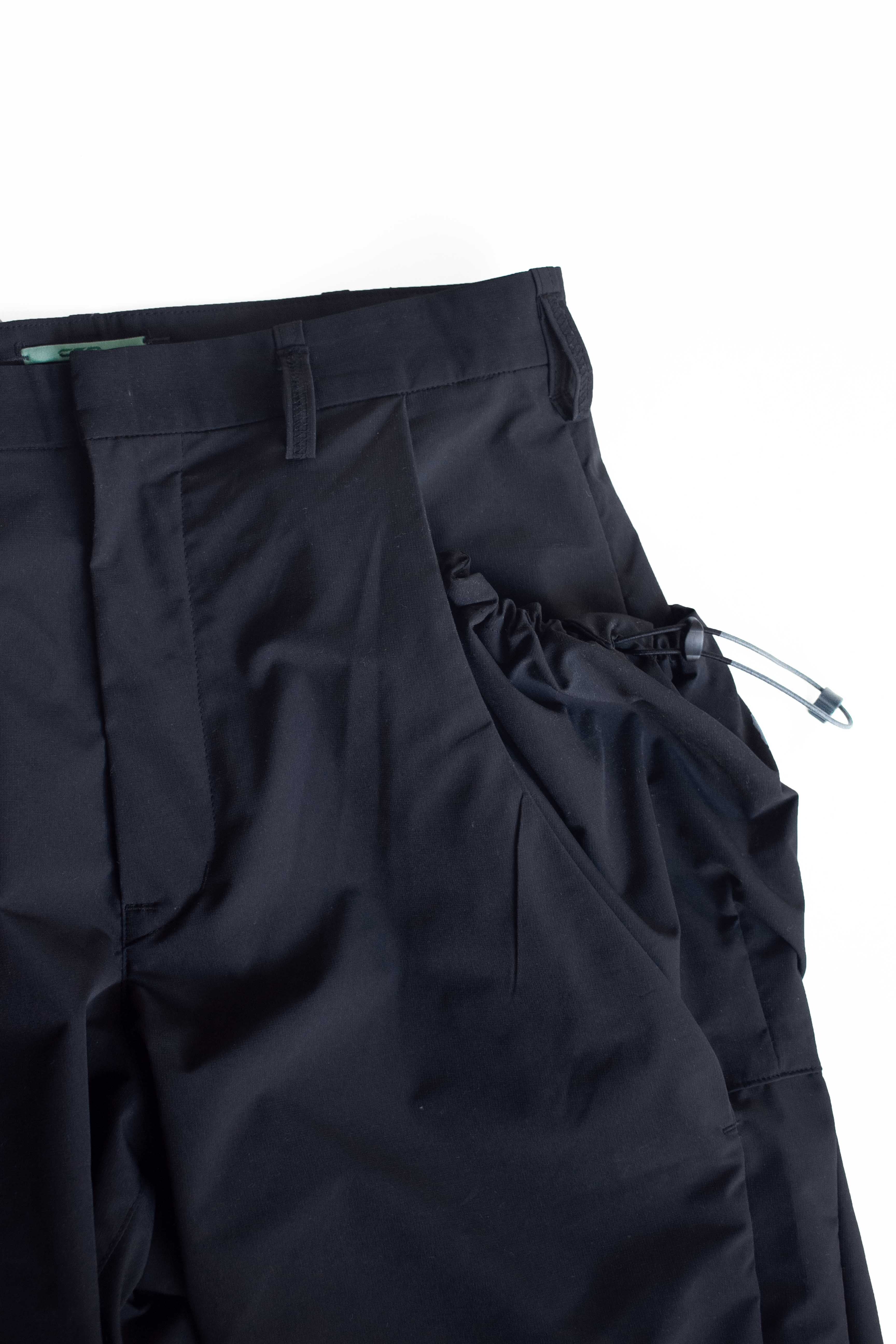 こちらはCCP SUBOME PT-NB115になります。生地には撥水性に吸水速乾性、ストレッチ性という特徴を持った化繊ながらもコットンのような見え方もする高機能生地を使用。デザインは両サイドにアジャスターを配したポーチのような形状のポケットを装備。大きめのマチを配し容量が変化する独創的なポケットになります。またサイドはラインのようなハギを配しデザインアクセントにし、シルエットは腿回りはゆったりとしながらも裾に向かって軽くテーパードしたをシルエットを採用。CCPならではの唯一無二なアーバンアウトドアパンツに仕上がっております。是非お試しください。