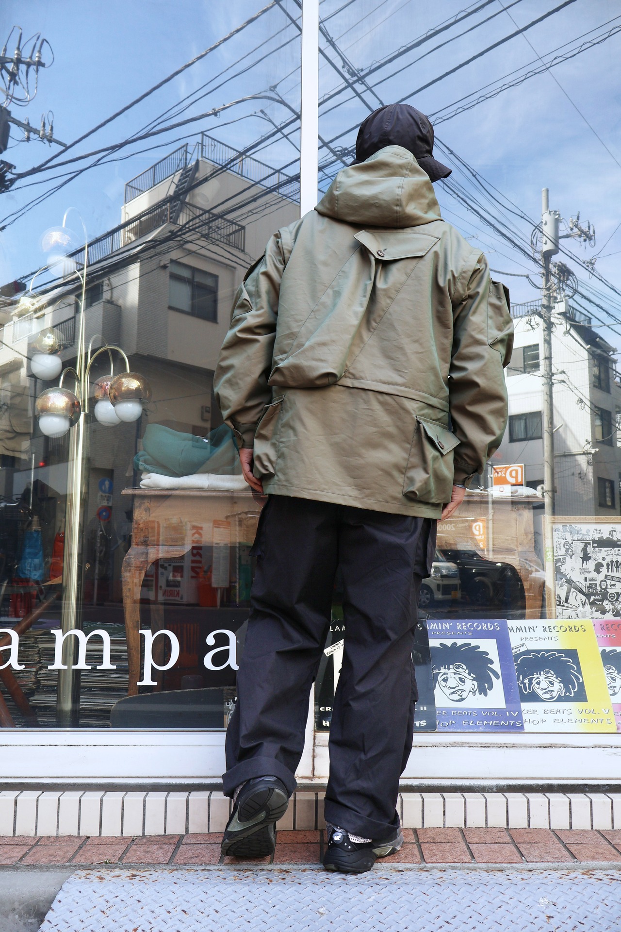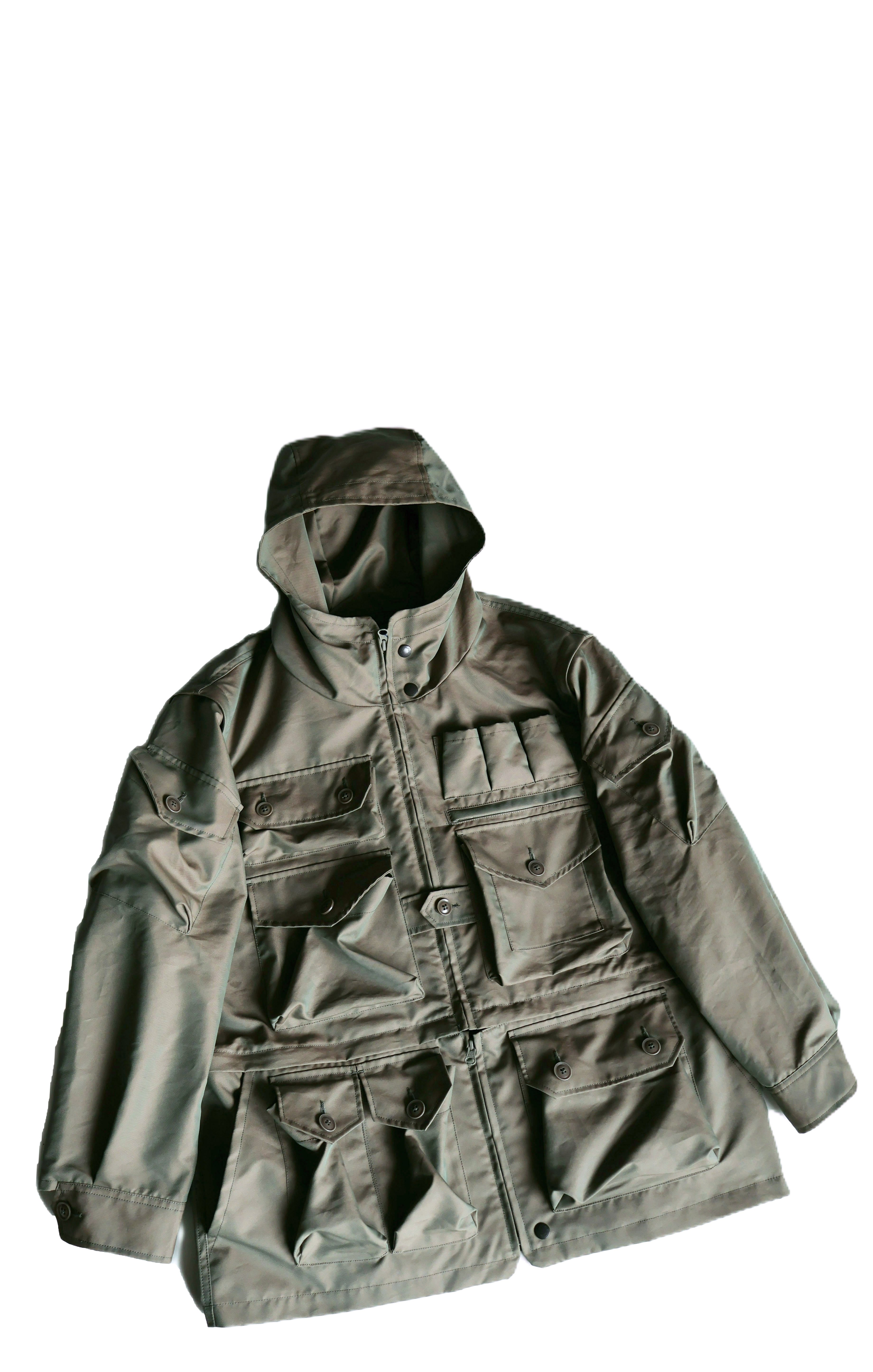 こちらはMODMNT PHOTOGRAPHER JKTになります。生地には高機能素材であるベントーネを使用。ベンタイルの製造技術を応用しコットンとポリエステルを高密度に織り上げ、ソフト加工、ピーチ加工、撥水加工を施す事により、しっかりとした安心感ある生地感ながらも滑らで肌触りが良く、更に撥水性を持った生地になります。デザインはアンディウォホールも愛用していた80年代のフォトグラファージャケットをベースに、各所に様々な形状のポケットを配し、背面には三脚を収納できるポケットを装備。また袖、裾部分が着脱可能で様々なシチュエーション、スタイルに対応可能。MODMNTが提案するVINTAGE過ぎず新し過ぎない絶妙なバランス感のフォトグラファージャケットを是非お試しください。