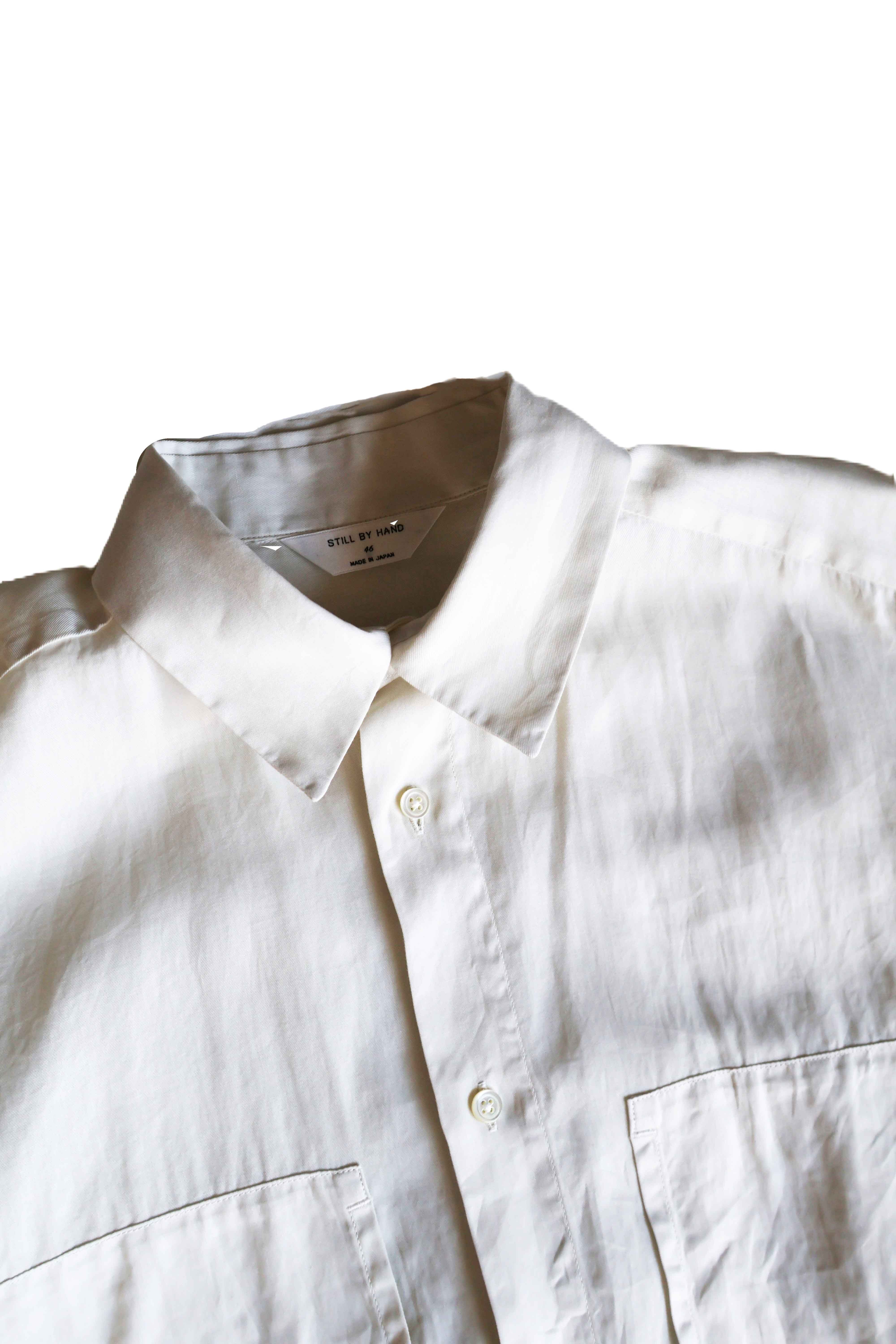 こちらはSTILL BY HAND 製品染めシャツ SH05261になります。生地には製品染めを施したコットン100%の生地を使用。一見リネンの様な見え方にドライな肌触り、製品染め特有の発色の良さが特徴の生地になります。デザインはややゆったりとしたシルエットに、胸にミリタリーアイテムにあるような独特なポケットデザインを採用。春を感じさせる綺麗な色に、羽織としても使いやすい絶妙なサイズ感は重宝する事は間違い無しです。是非お試しください。