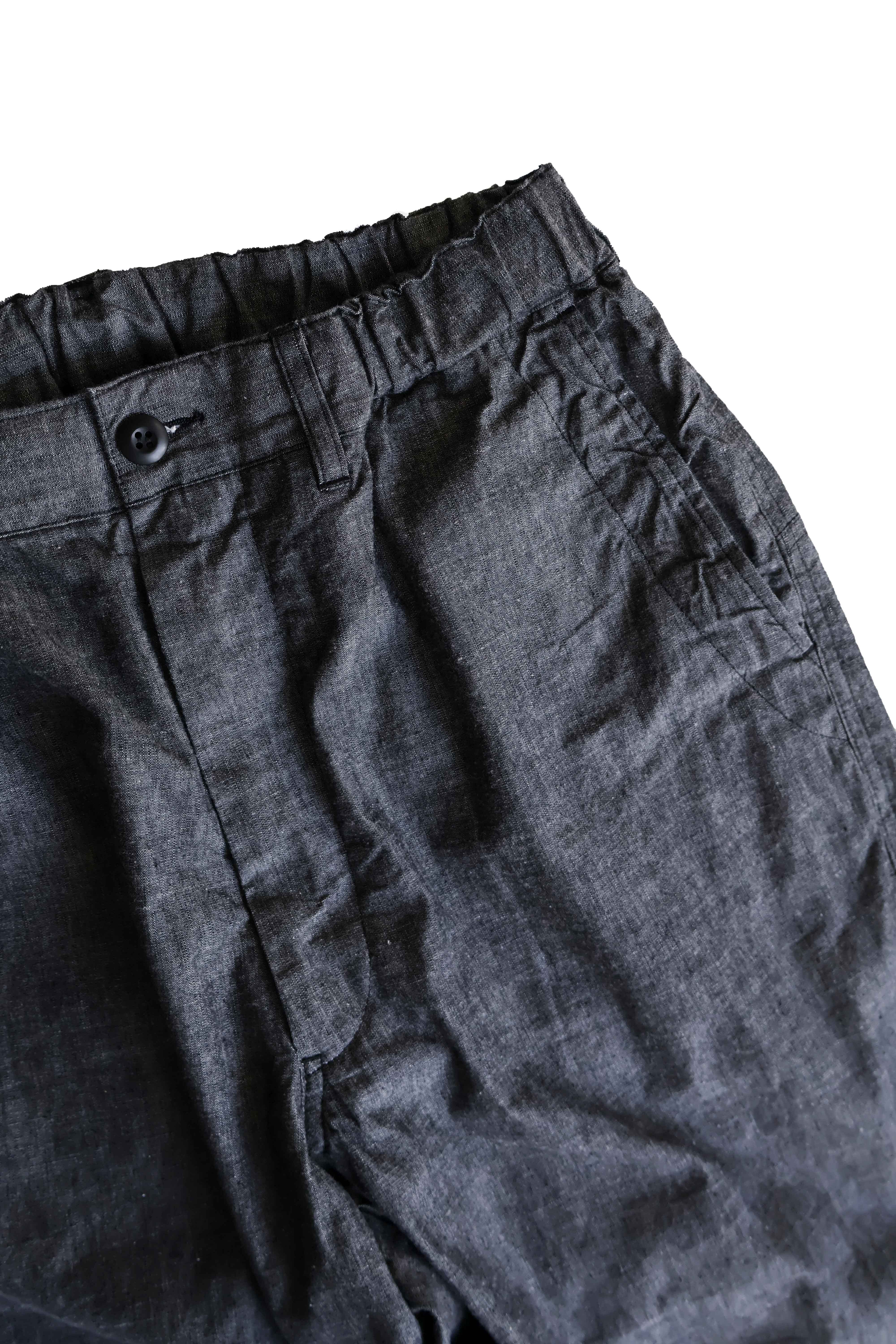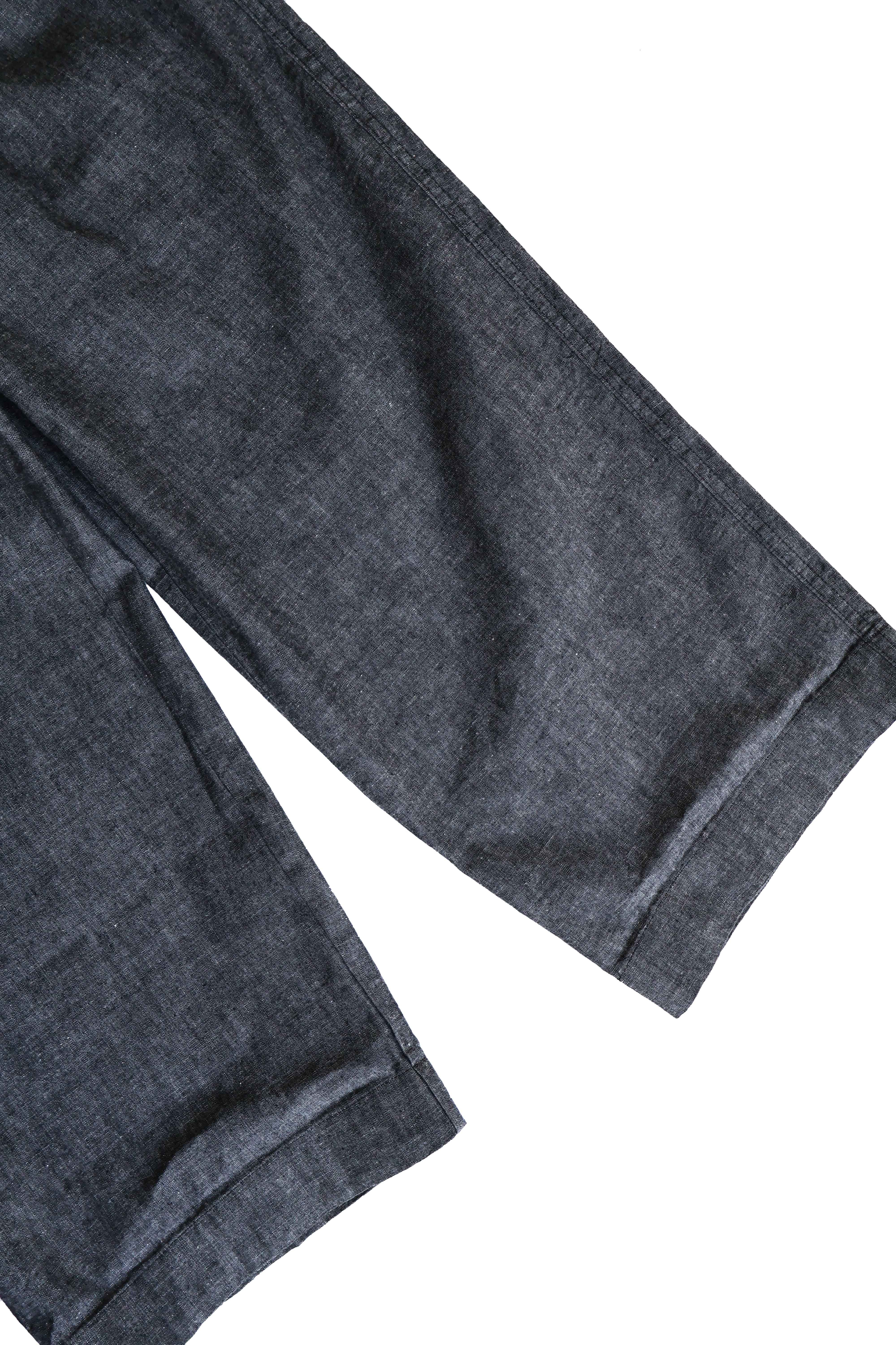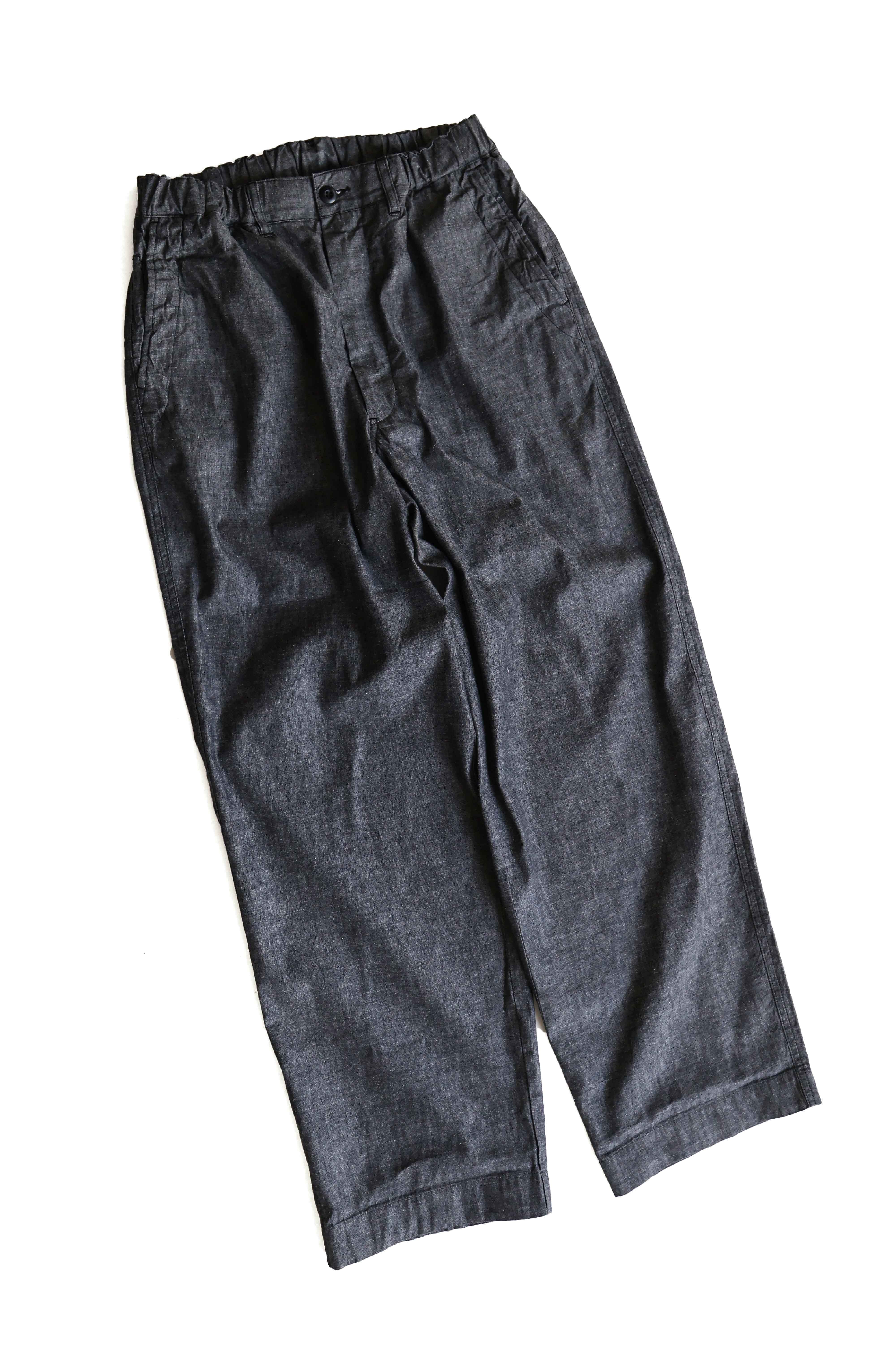 こちらはBRENA COQ PANTS VINTAGE FRENCH CHAMBRAYになります。生地には60年代デッドストックのフレンチシャンブレー生地を使用。いわゆるアメリカのワーク的なシャンブレーとは違う、上品で奥深い表情のある生地になります。デザインはヨーロッパのコックパンツをベースにし、シルエットはヒップ周りはゆったりと裾にむかって軽くテーパード。またウエウストはイージー仕様にしリラックス感を演出。希少なデッドストック生地を使用したBRENAならではの大人なカジュアルパンツを是非お試し下さい。