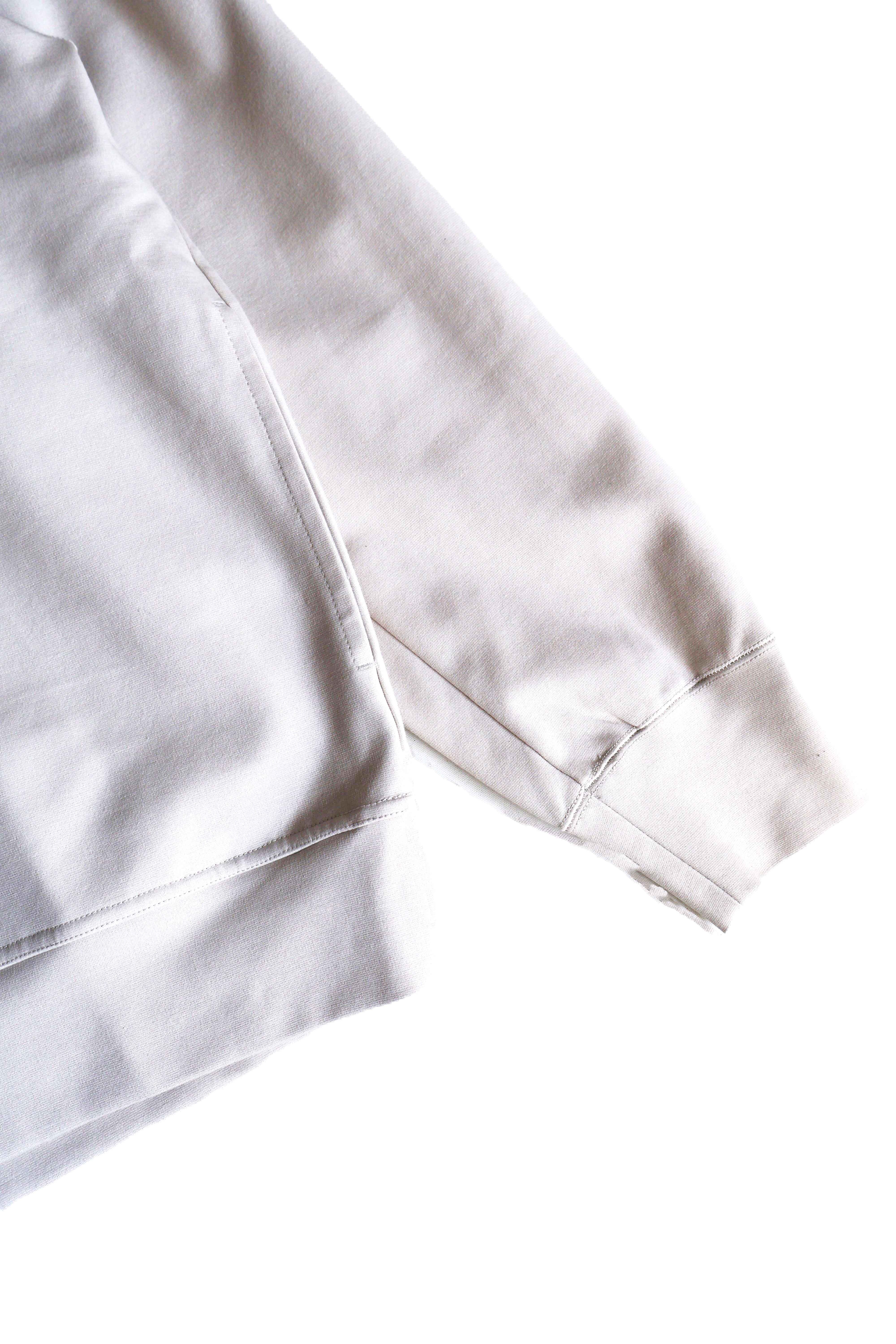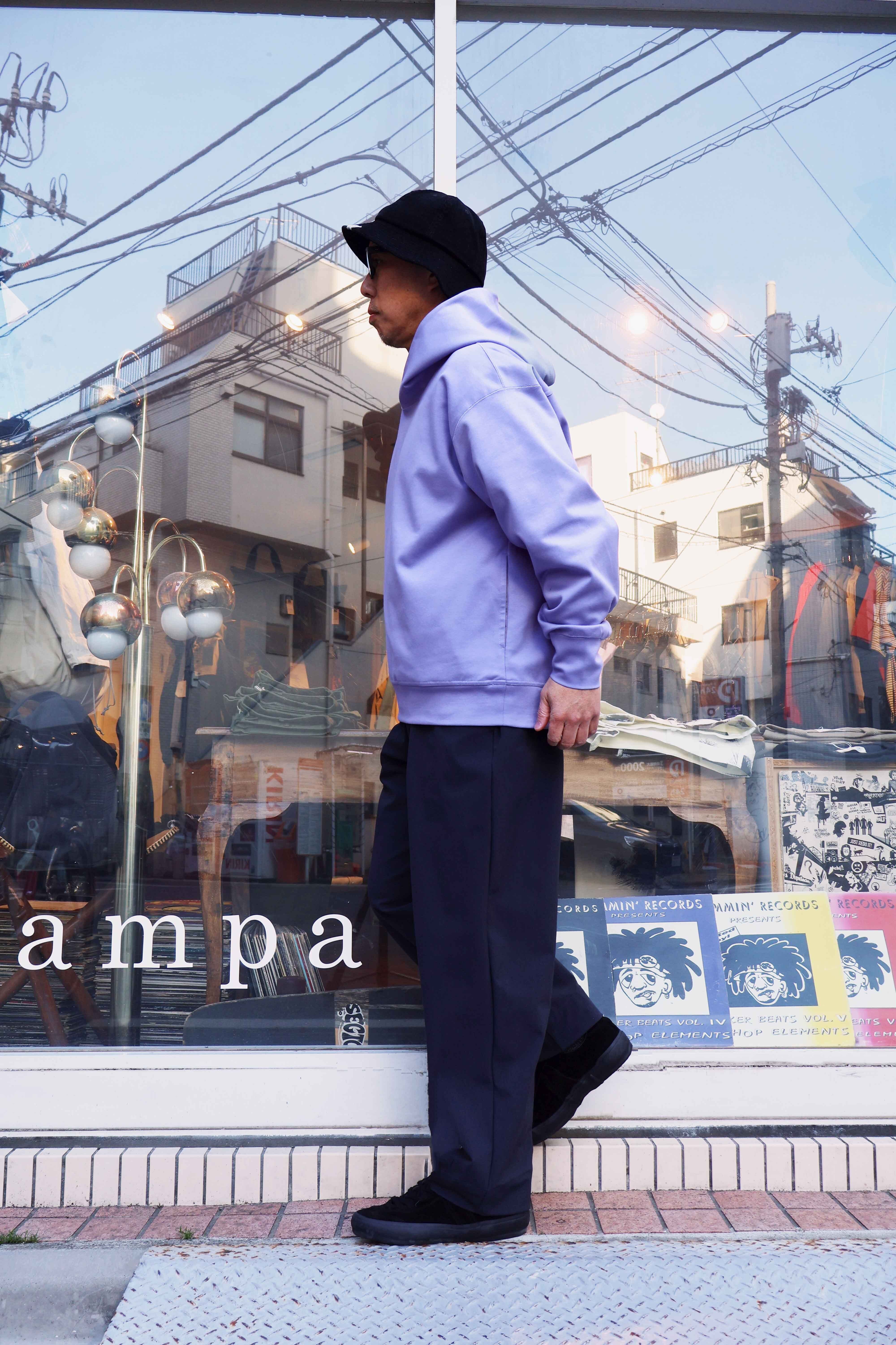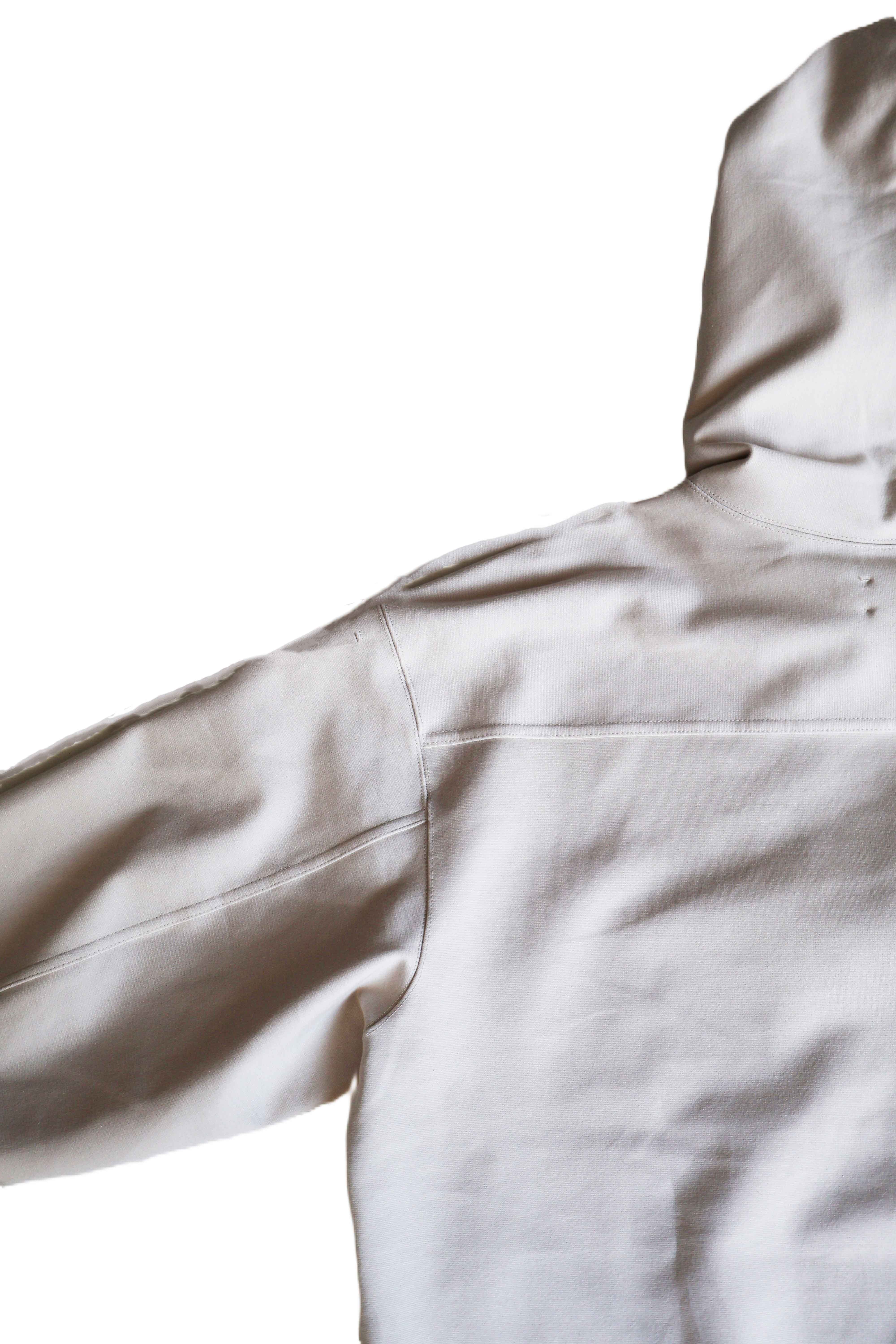 こちらはPERS PROJECTS RILEY P/O PARKAになります。生地には適度にハリ感がありながらも、もっちりとした肉感とストレッリ性が高くキックバック性にも優れたジャージ素材を使用。一般的な裏毛や裏起毛のスウエット生地とは違い、裏地がループ状になっていたり起毛していない、表地と同様にツルっとした表面なので、これからの時期にピッタリな生地となっております。デザインはオールドのスウェットパーカで見られる首元で重なるフード仕様により、綺麗なフードの形状を実現。また両脇にはシームポケットをを配し、いわゆるパーカーに多くみられるカンガルーポケットには無いミニマムな雰囲気を演出し、更に袖はハギを入れる事により立体的なシルエットを形成。一見シンプルですが、実は各所に隠し味を効かせたPERS PROJECTSらしいパーカーに仕上がっております。是非お試しください。