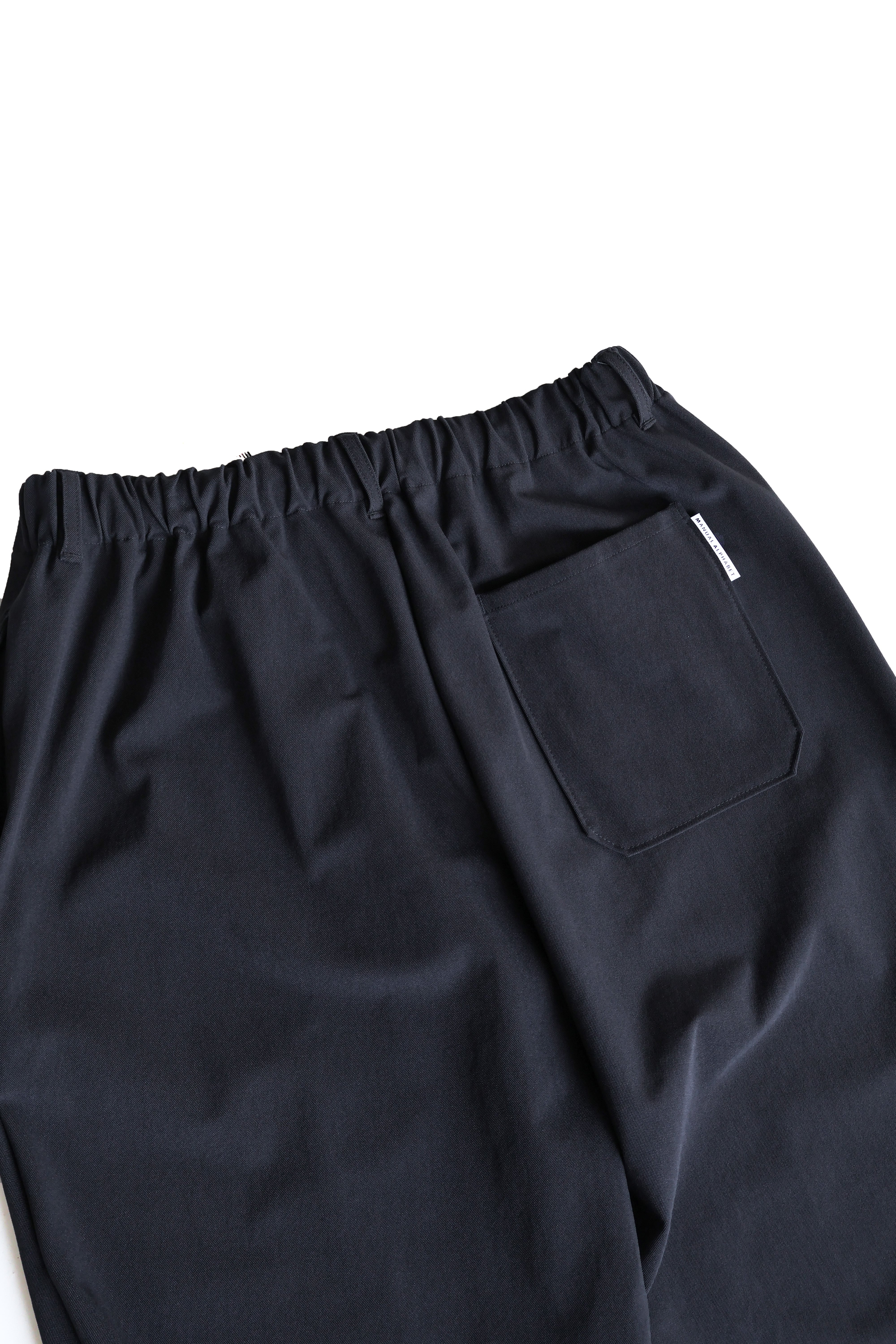 こちらはMANUAL ALPHABET JOURPANTS WIDE MA-P-277になります。生地にはポリウレタン混ナイロン鹿の子ジャージー素材を使用。適度なハリ感、吸水性、汗をかいてもベタつかないドライな肌触りに、ストレッチ性がありキックバックにも優れた快適な生地になります。デザインはウエストはゴムのイージー仕様にシルエットは全体的にややゆったりとし、ヒップから裾に向かって軽くテーパードしたシルエットを採用。ハリ感のある生地の特徴も相俟ってストレッチ性のある化繊ながらも綺麗なシルエットに、キックバックに優れているので膝が出にくいパンツとなっております。夏場でも快適に穿いて頂ける洒落たパンツを是非お試しください。